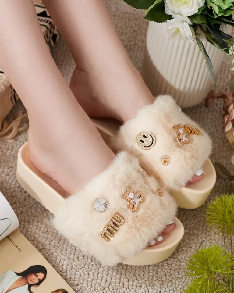 - Klapki damskie wykonane z eko skórzanej wkładki i futerkowej cholewki. Platforma i ozdoby na paseczku dodają uroku i charakteru. Ciesz się wygodą i stylem zabierając te obuwie na wakacje!