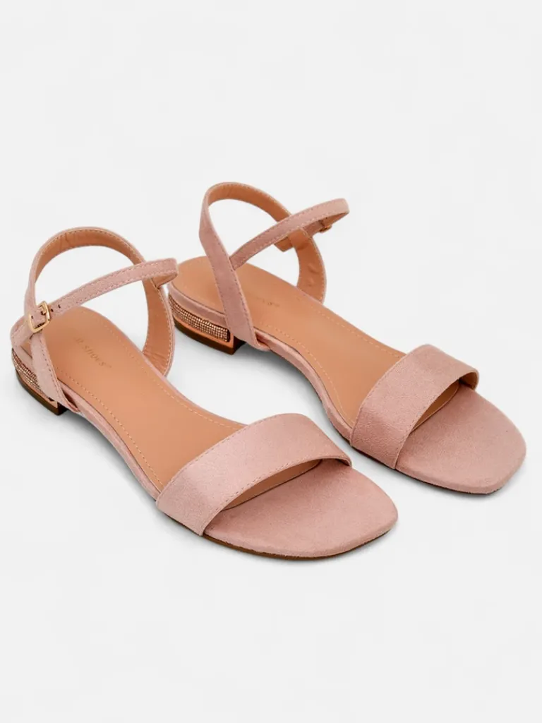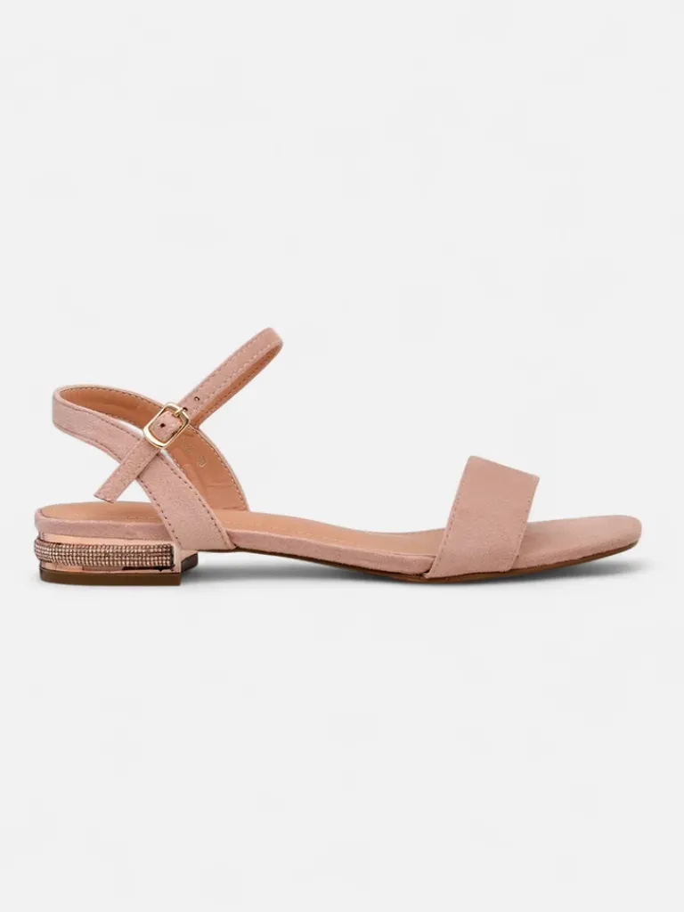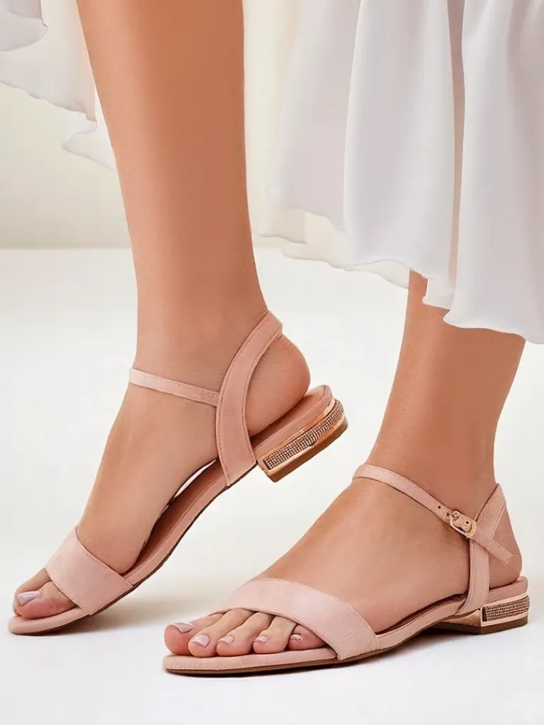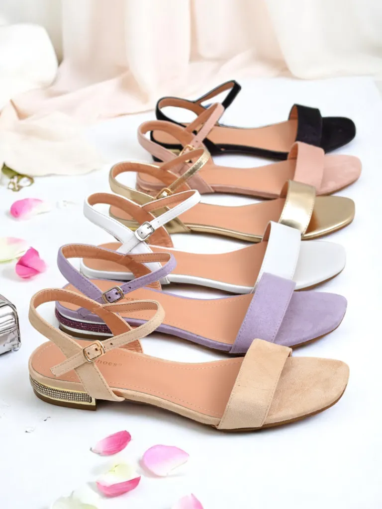 - Damskie sandałki na niskiej podeszwie – to idealny pomysł na gorące letnie dni. Model wykonany z eko skóry zaamszowej i eko skórzanej wkładki. Obuwie zapinane na sprzączkę. Połączenie stylu i wygody!