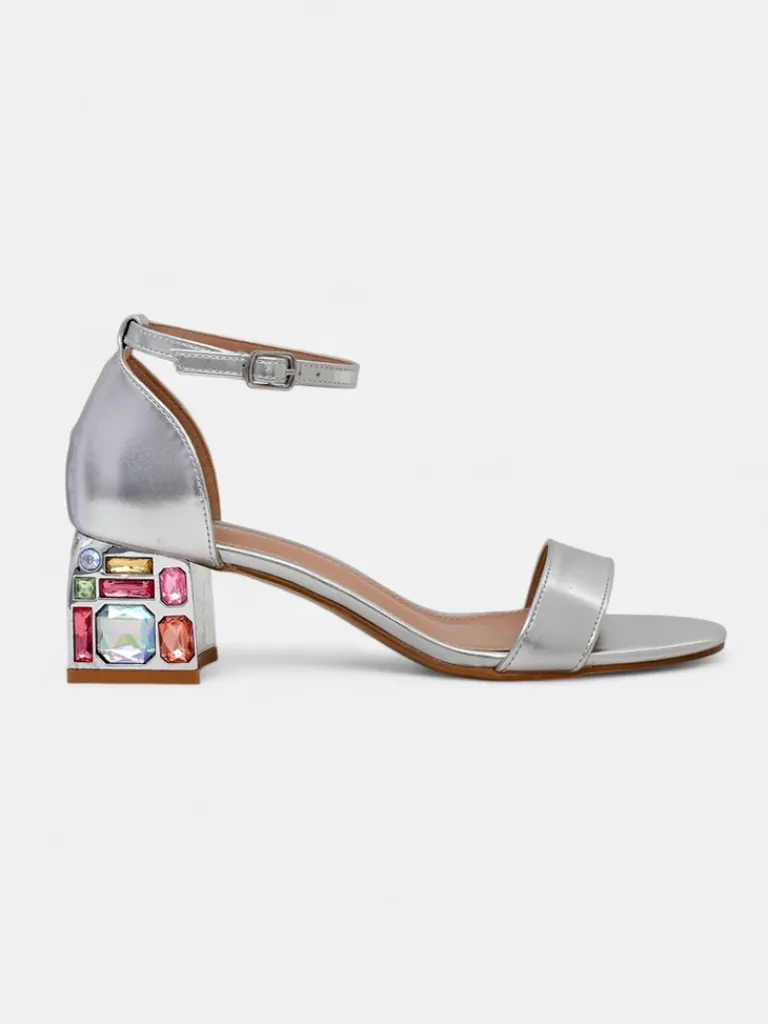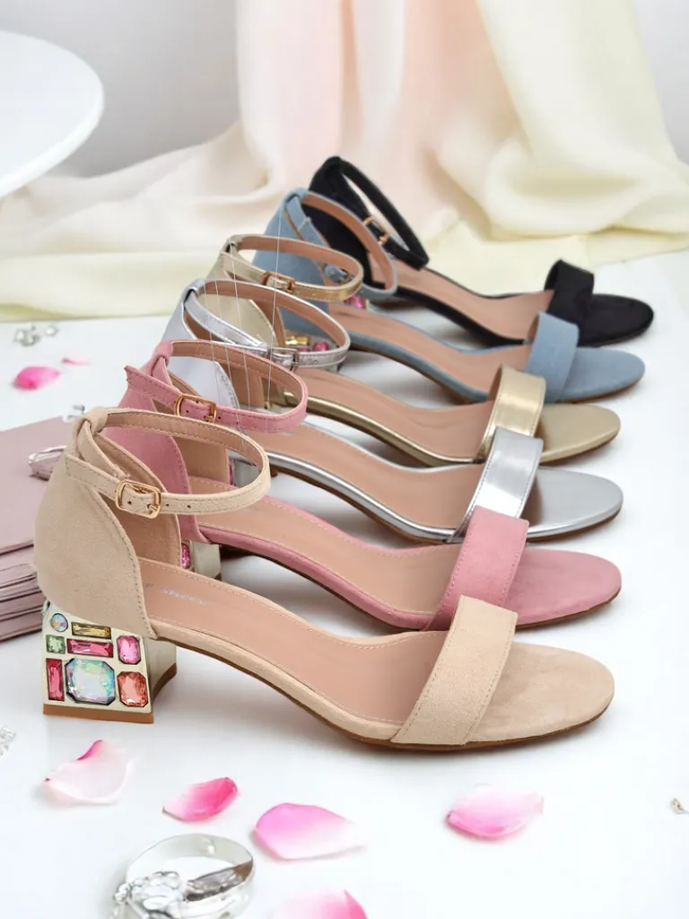 - Damskie sandałki na ozdobnym słupku z kolorowymi kryształkami- to idealny pomysł na gorące letnie dni. Model wykonany ze skóry ekologicznej i eko skórzanej wkładki. Obuwie zapinane na sprzączkę, posiada zaokrąglony nosek. Połączenie stylu i wygody!