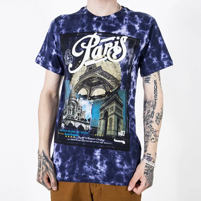 - Klasyczny męski t-shirt wykonany ze 100% bawełny. Model z krótkim rękawem oraz okrągłym dekoltem. Przednia część koszulki jest zdobiona nadrukiem. UWAGA: Dokładność pomiaru (+/-) 1 cm.