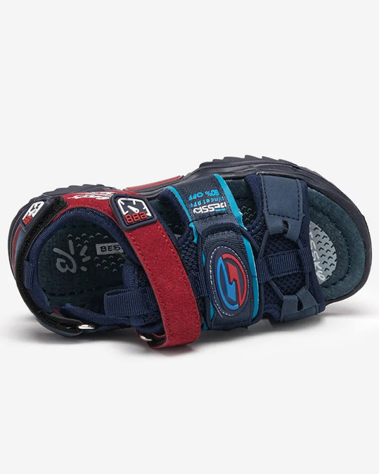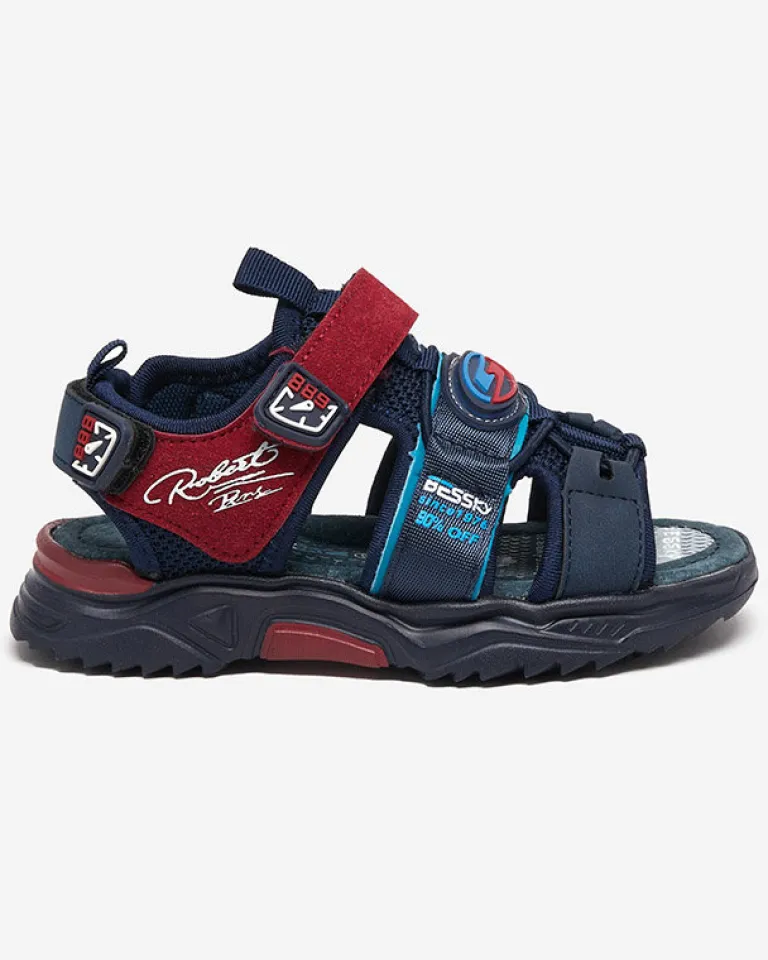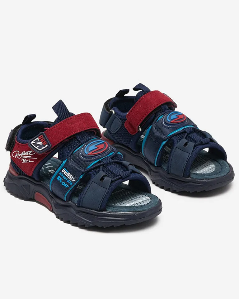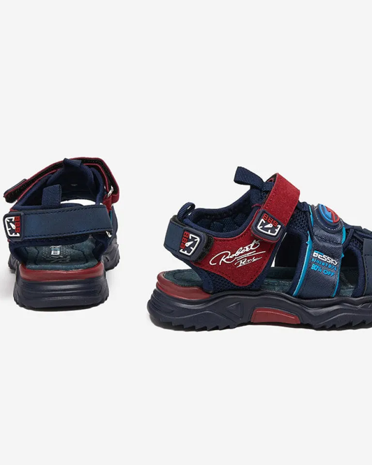 Discount Granatowo-bordowe chłopięce sandały na rzepy Roserro Chłopięce