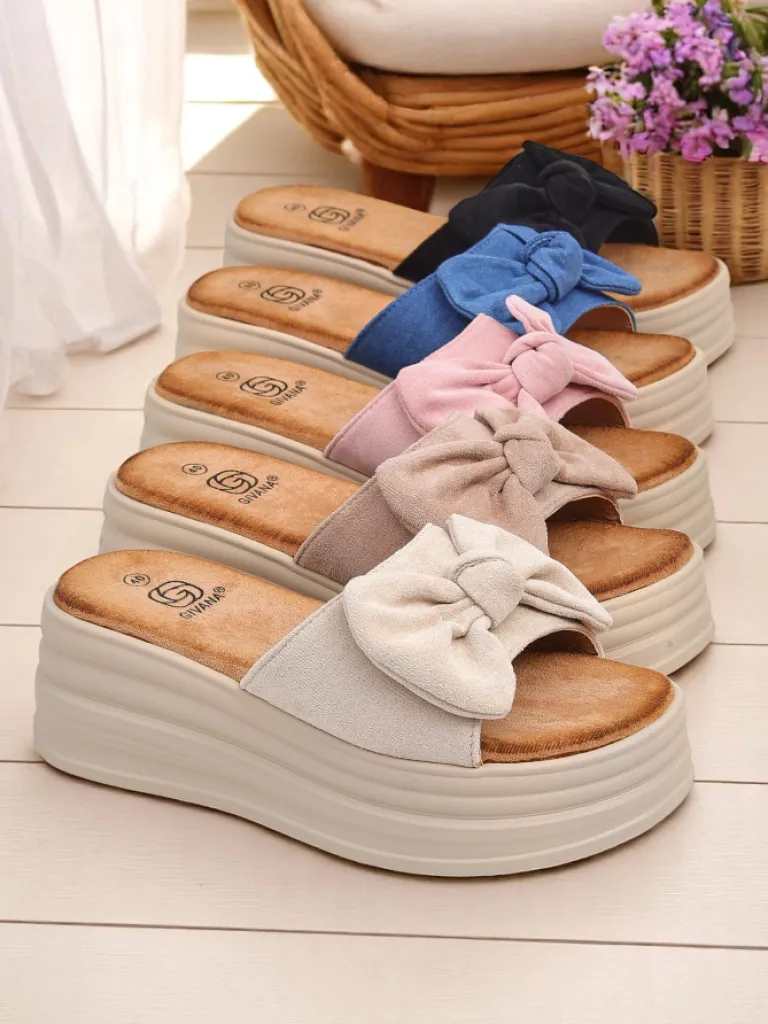- Klapki na zdobionej platformie to połączenie stylu i wygody. Ich zamszowy materiał wraz z grubszą podeszwą dodają uroku, podkreślając elegancję. Zapewniają miękkość i komfort na każdym kroku. Te klapki są idealne na letnie dni!