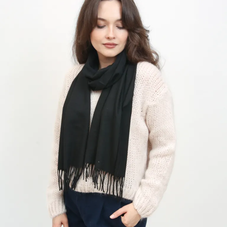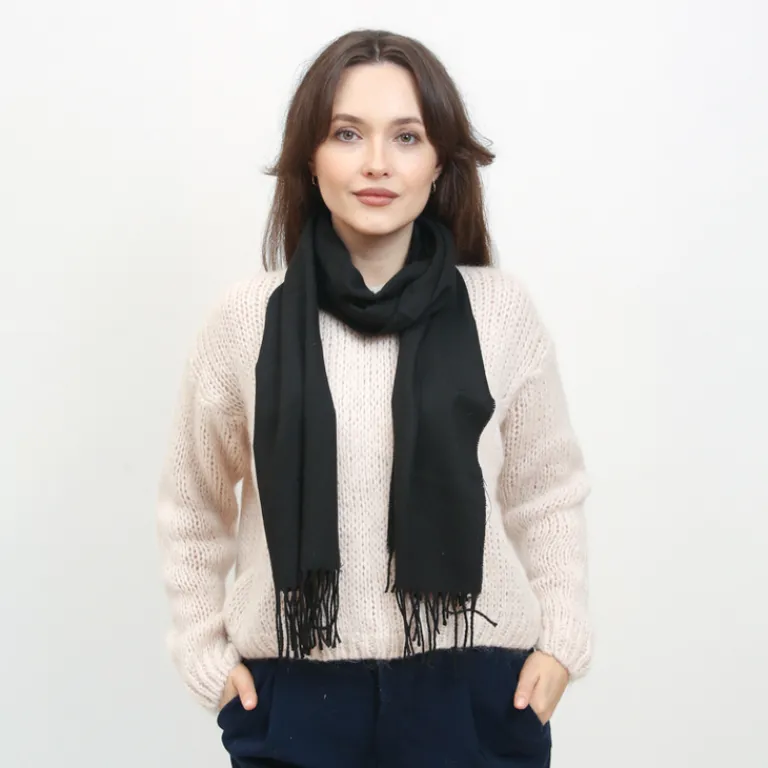 - Klasyczny jednokolorowy, ciepły damski szalik, wykonany z miękkiej tkaniny zakończonej frędzlami. Super dodatek do Twoich casualowych outfitów!