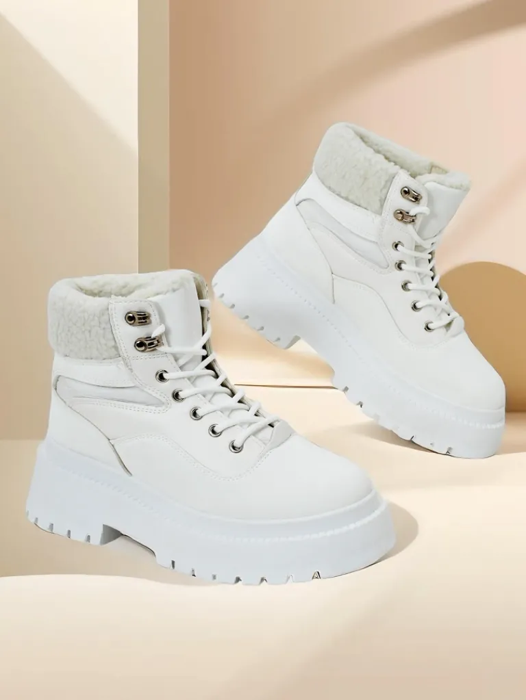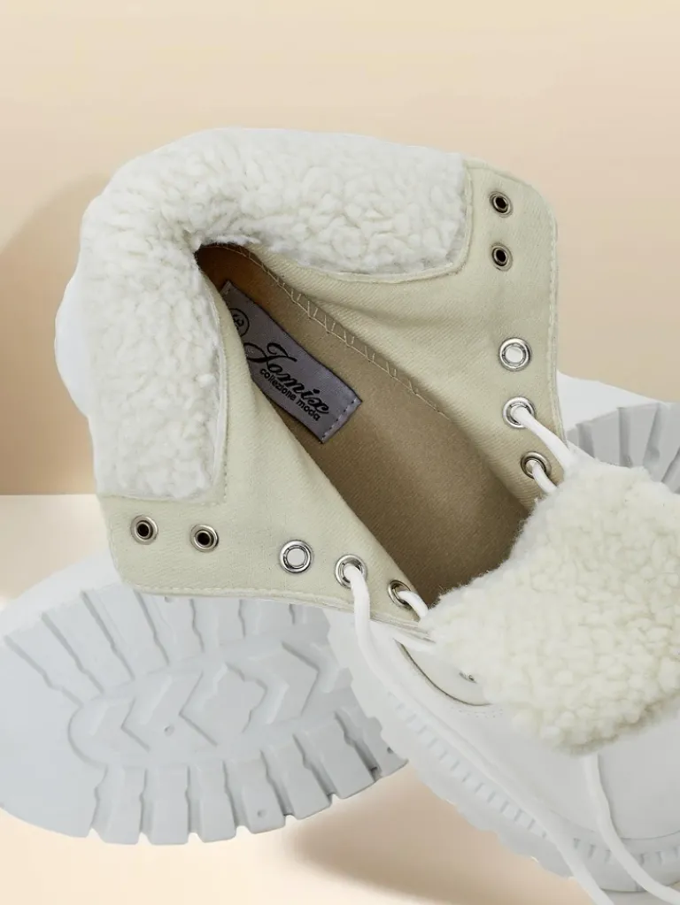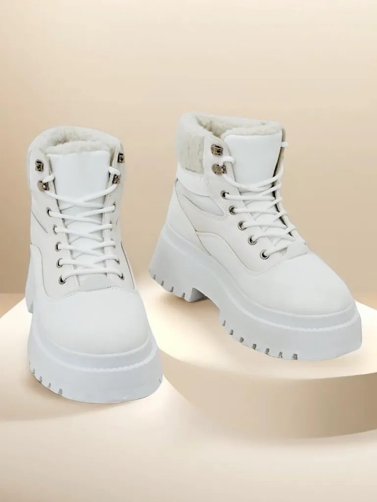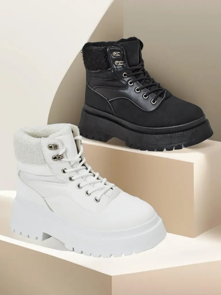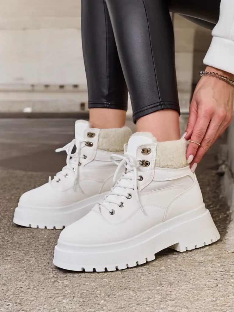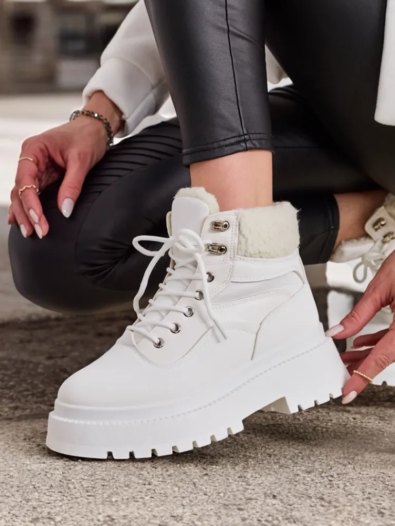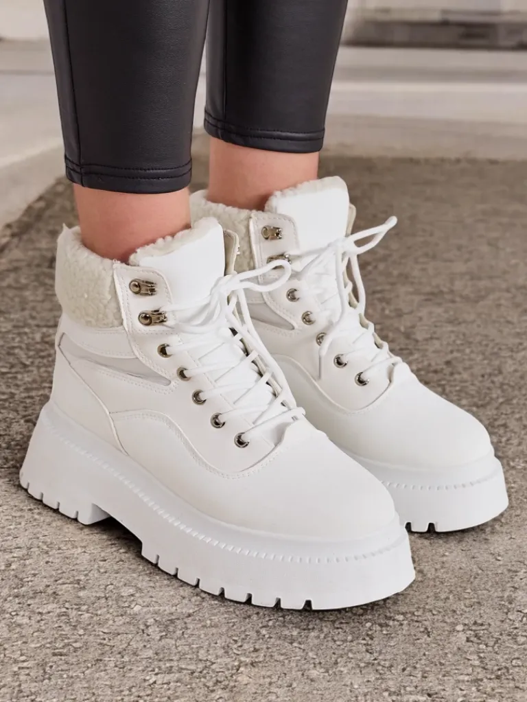 - Ponadczasowe damskie obuwie typu śniegowce na grubej podeszwie. Cholewka wykonana ze skóry ekologicznej. W środku ocieplenie w formie futerka, obuwie sznurowane. Idealne na chłodniejszą porę roku!
