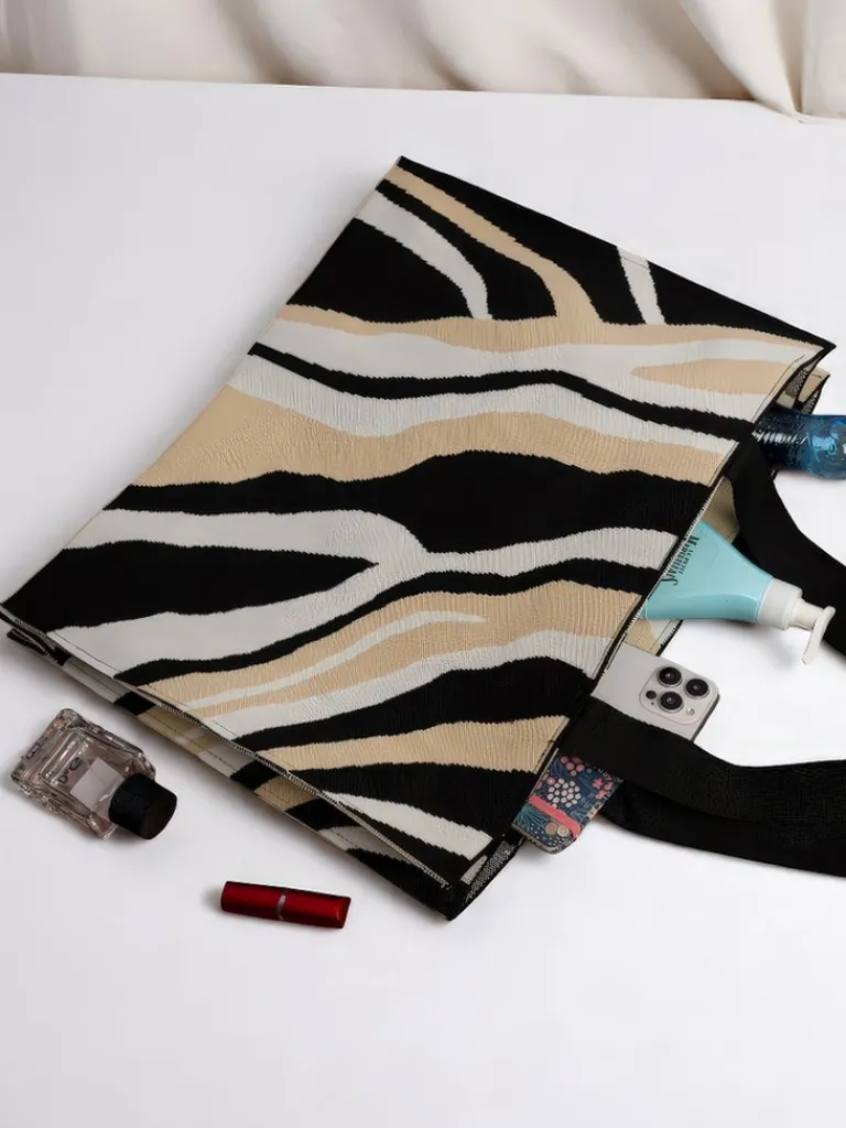 - Duża, materiałowa torebka damska z oryginalnym wzorem safari. 1 komora, zapięcie na zamek. Pojemna i lekka – idealna na co dzień i letnie przygody!