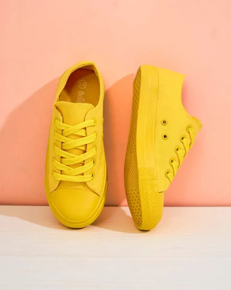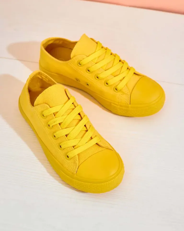 - Dziecięce trampki wykonane z materiału tkaninowego. Cholewka sznurowana. Podeszwa klasycznie gumowa. Te dziecięce buty będą świetne na co dzień!