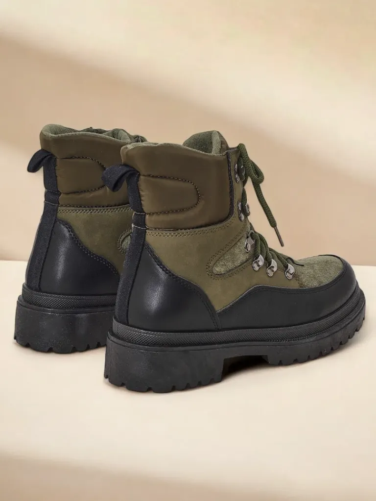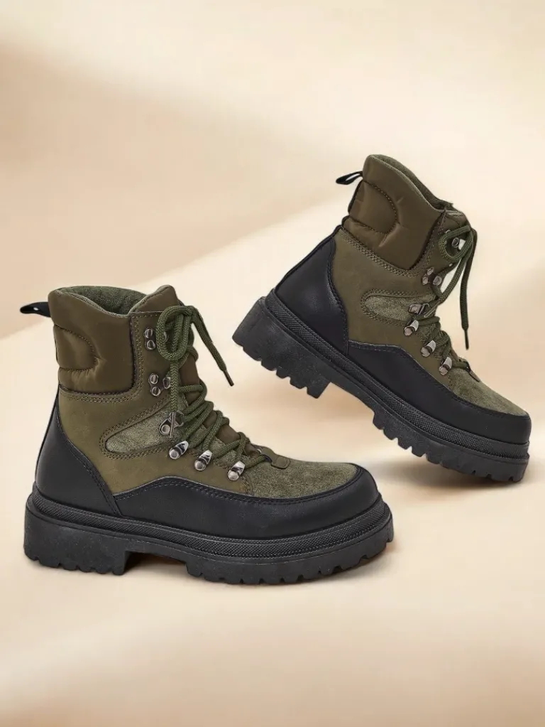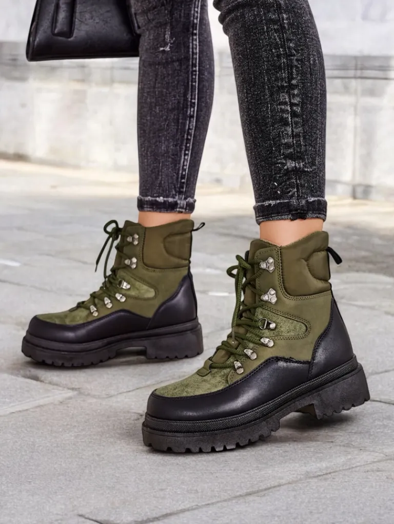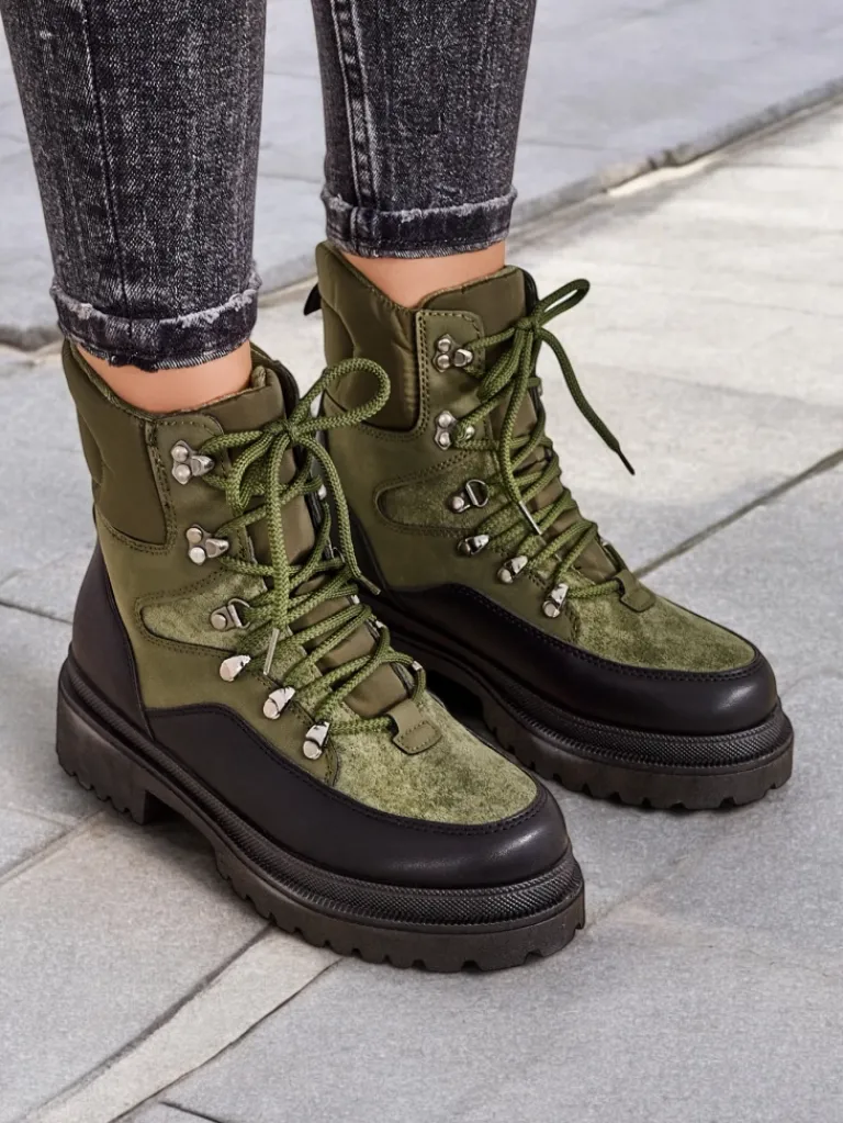 - Wyjątkowe trapery damskie, wykonane z połączenia eko skóry, eko skóry matowej i tkaniny. Model posiada sznurowaną cholewkę. Od środka wypełniony grubszą pianką i tkaniną. Konkretne buty na złą pogodę!