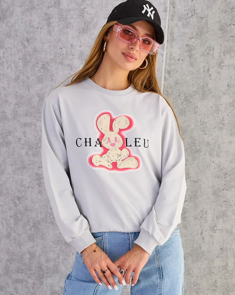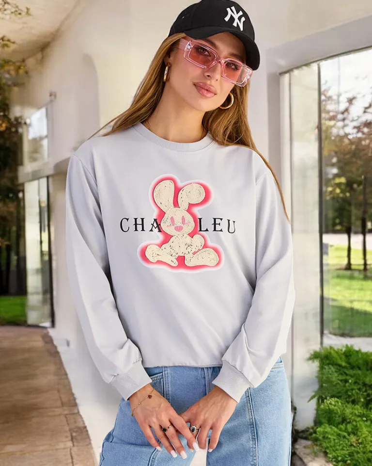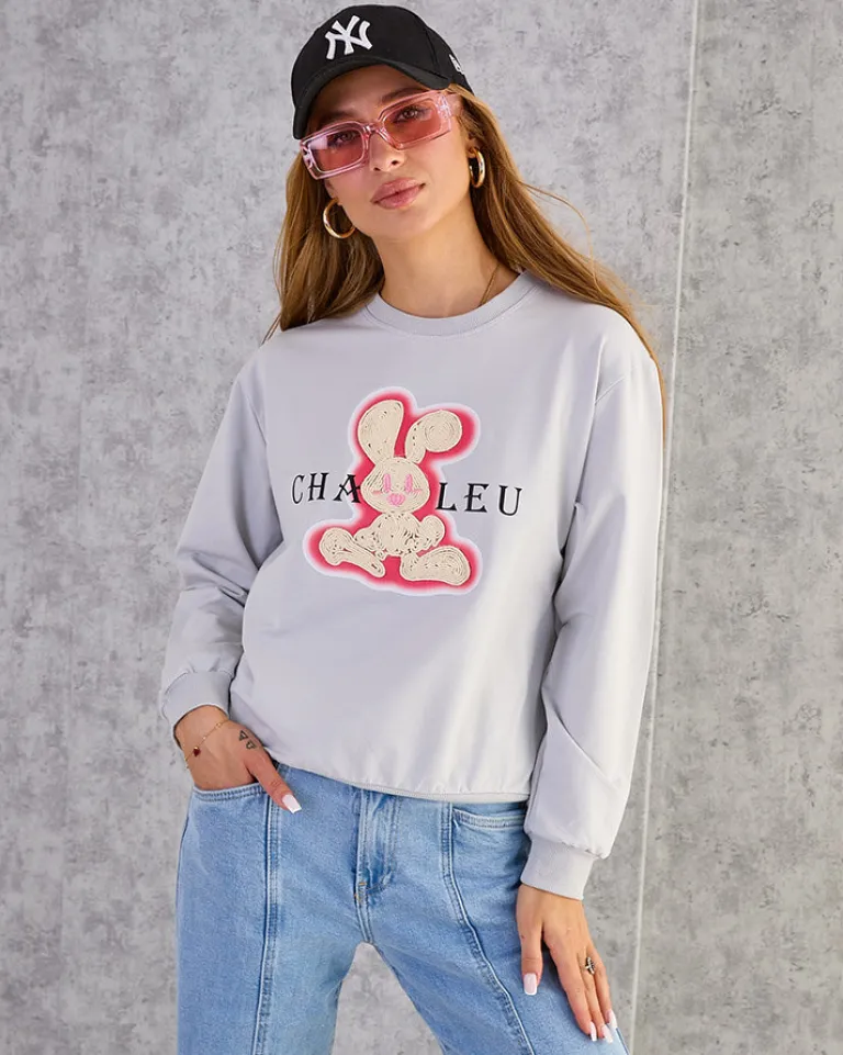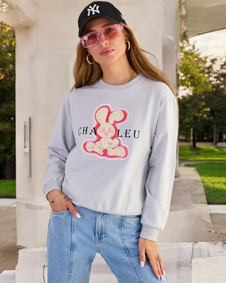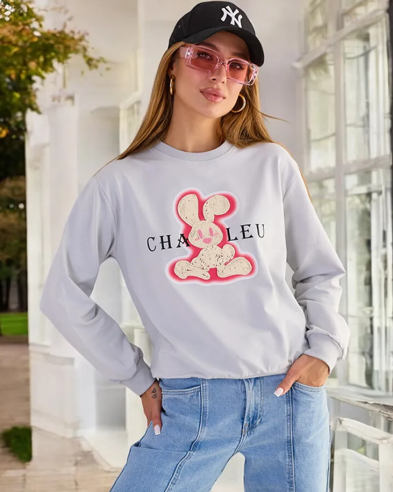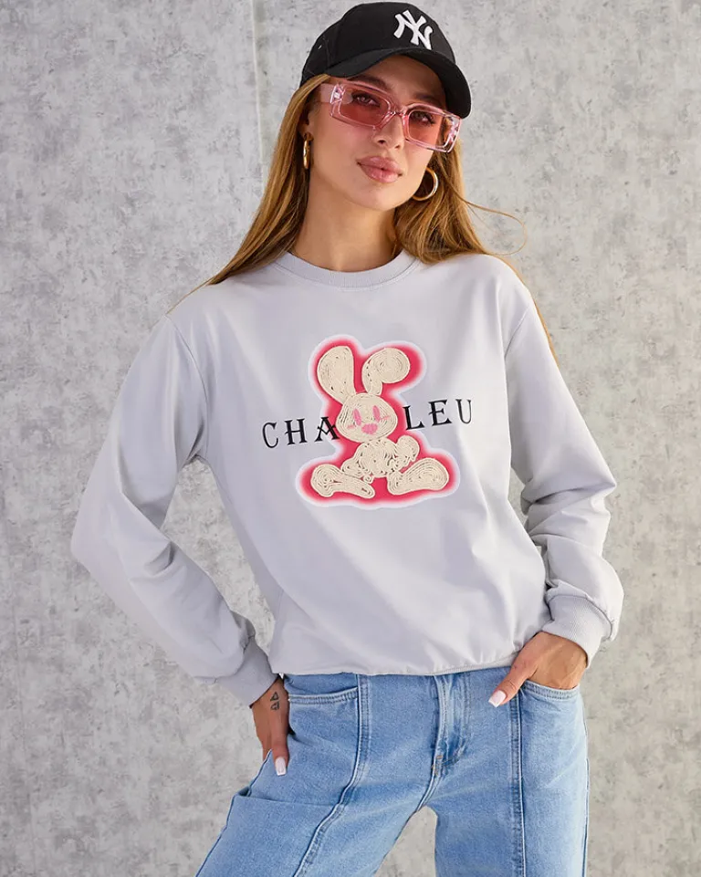 - Dodaj uroku swoim stylizacjom z naszą cieńszą bluzą, zdobioną naszywką króliczka. Wkładana przez głowę, z okrągłym dekoltem i długimi rękawami. Idealna na co dzień, gdy chcesz poczuć się swobodnie, a jednocześnie stylowo!