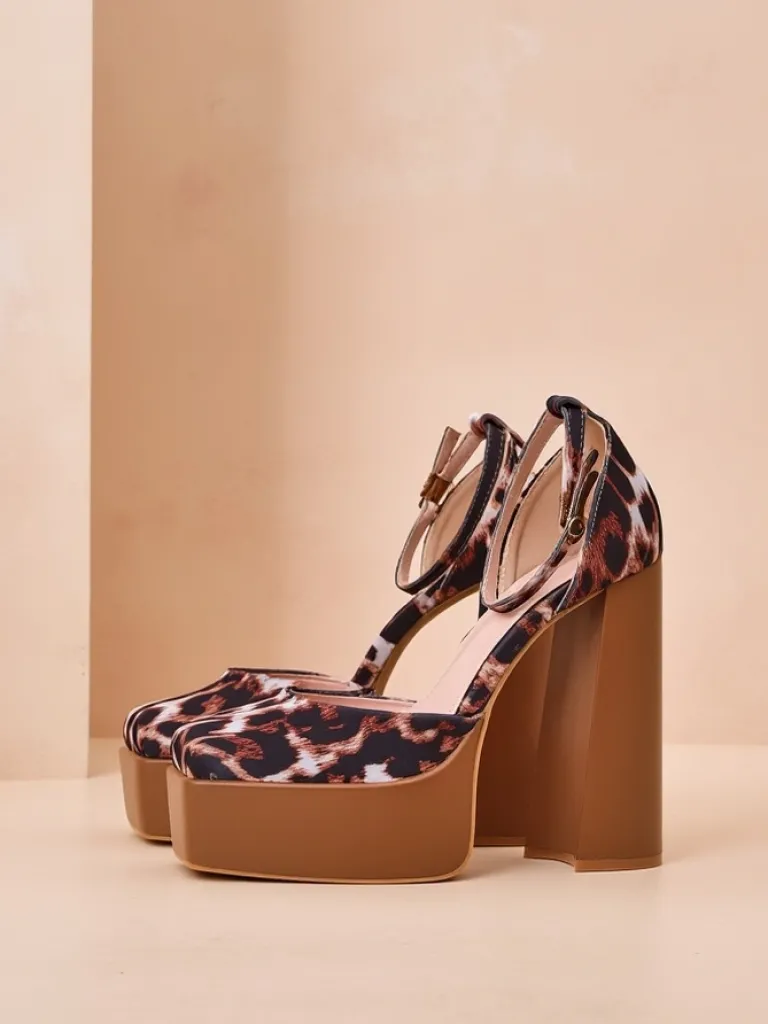 - Stylowe damskie czółenka na wysokim słupku i platformie. Cholewka jest wykonana z materiału tkaninowego a’la satyna, w środku wkładka ze skóry ekologicznej. Model posiada wokół kostki paseczek zapinany sprzączką.