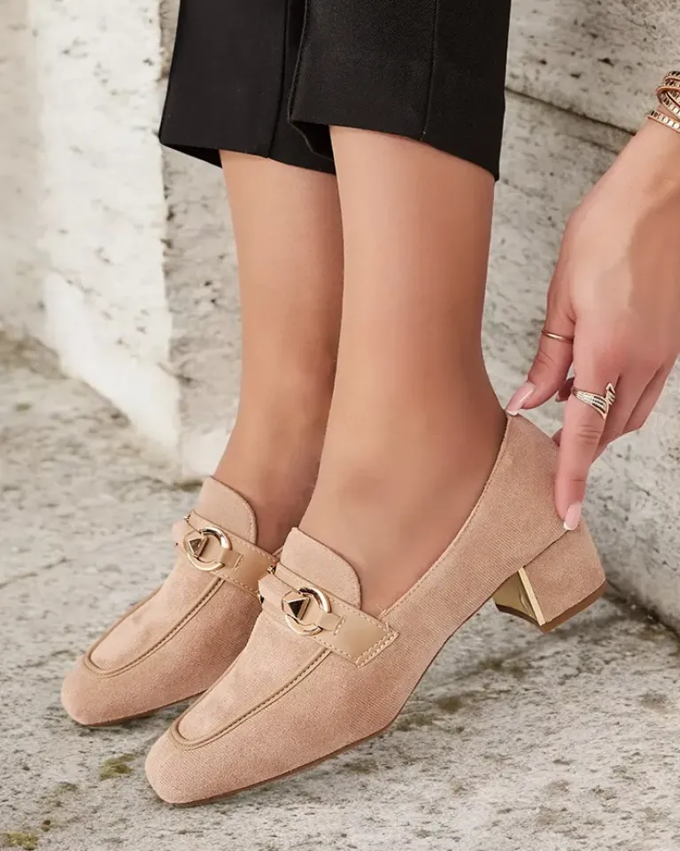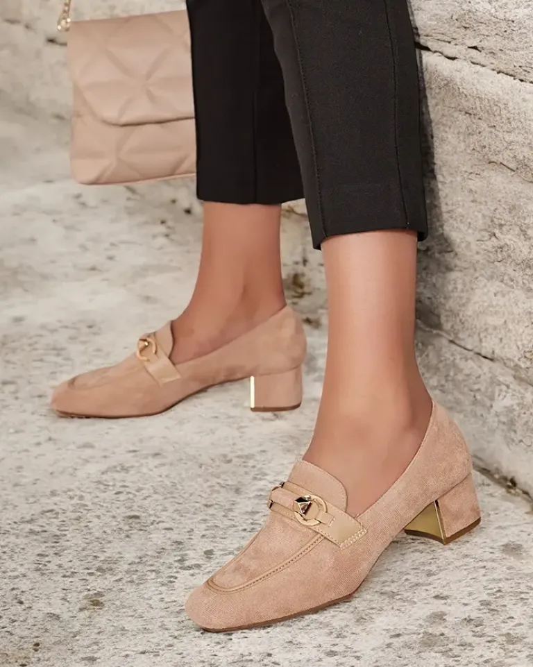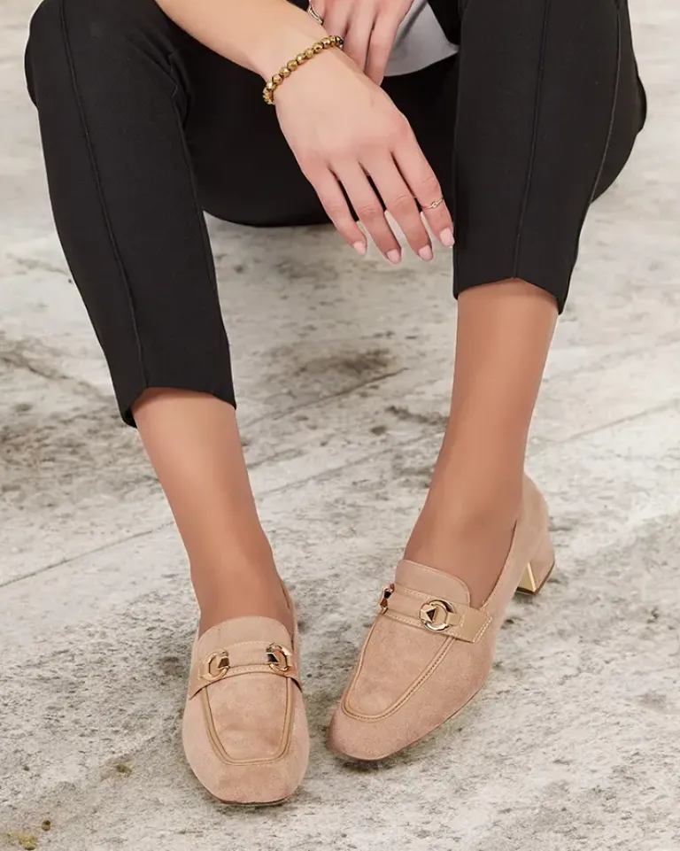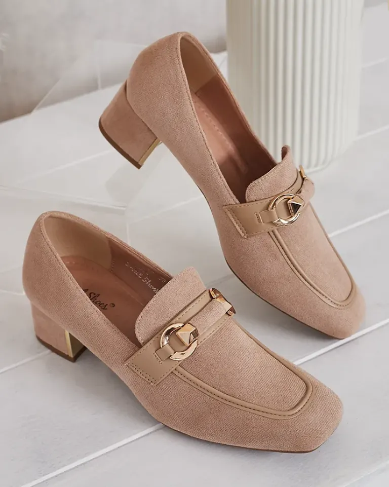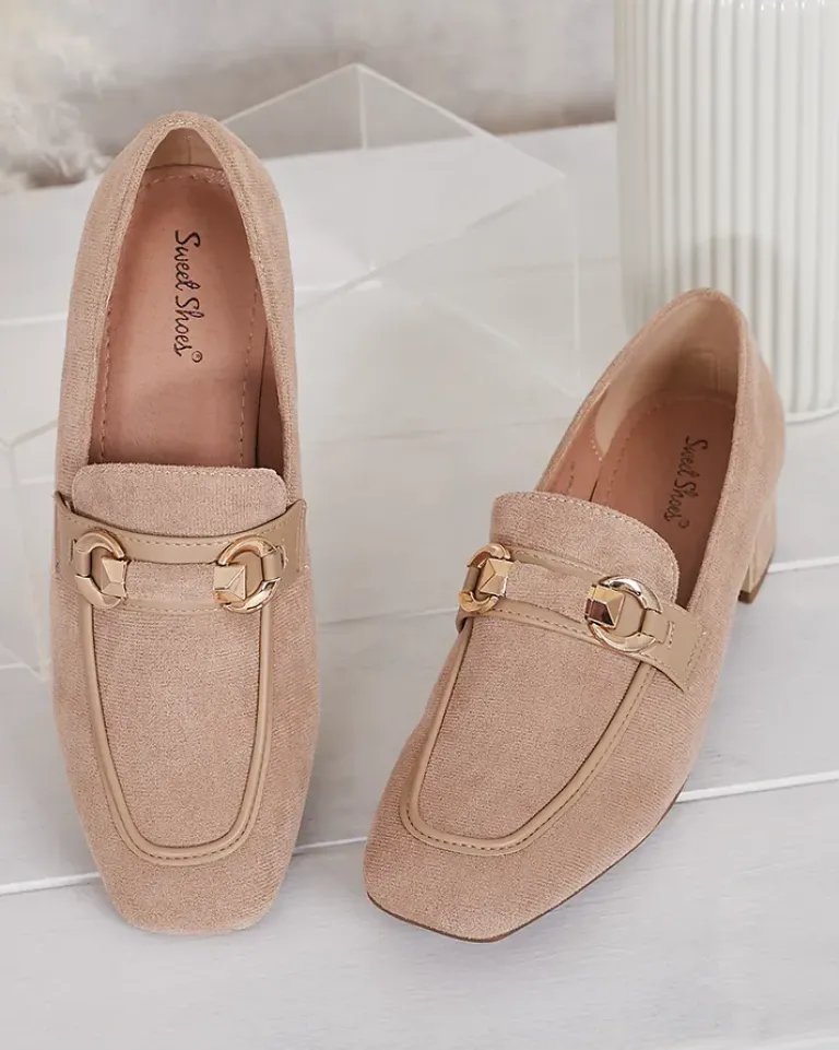 - Wyjątkowe damskie mokasyny na niskim słupku. Klasyczny model wykonany z zamszowej skóry ekologicznej oraz wkładki ze skóry ekologicznej. Model posiada subtelną ozdobę. Idealna baza na co dzień!