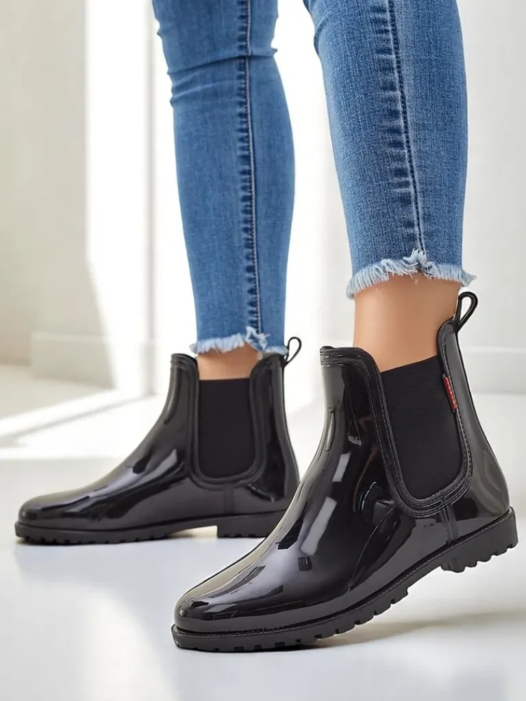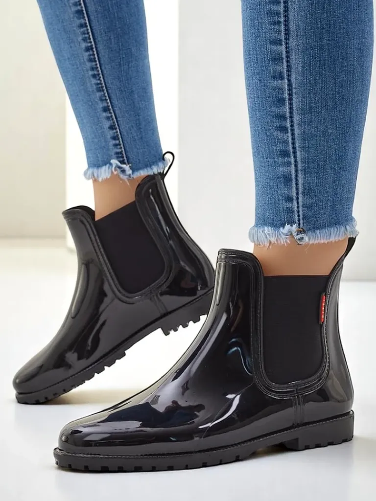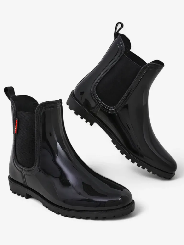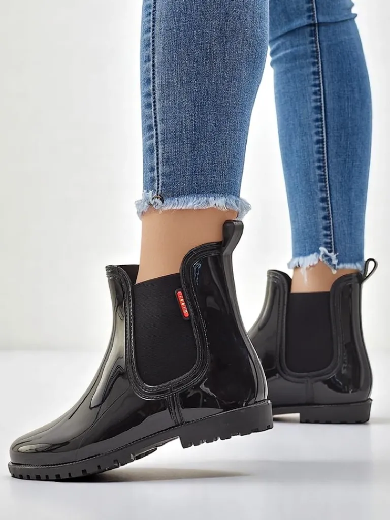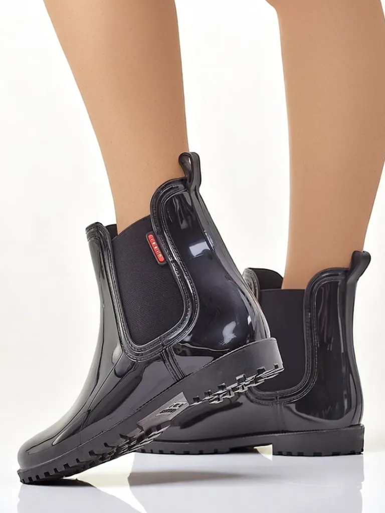 - Klasyczne damskie kalosze wykonane z tworzywa gumowego z lakierowanym wykończeniem. Wkładka to materiał tkaninowy. Obuwie idealne na jesienne deszczowe dni!