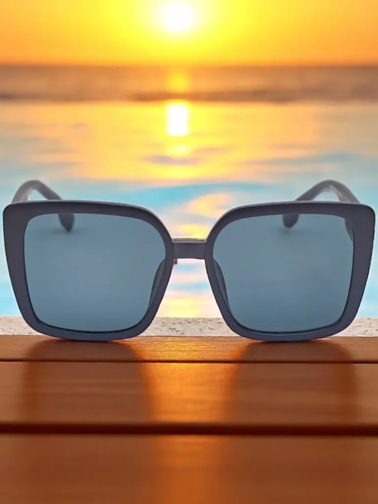 - Eleganckie okulary przeciwsłoneczne z wyrazistą, kwadratową oprawką. Styl premium z dopracowanymi detalami – idealne do szykownych stylizacji i modnych akcentów.