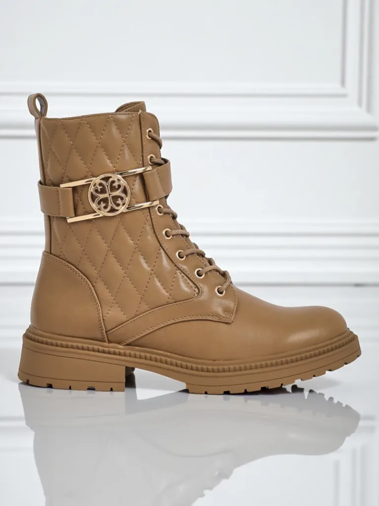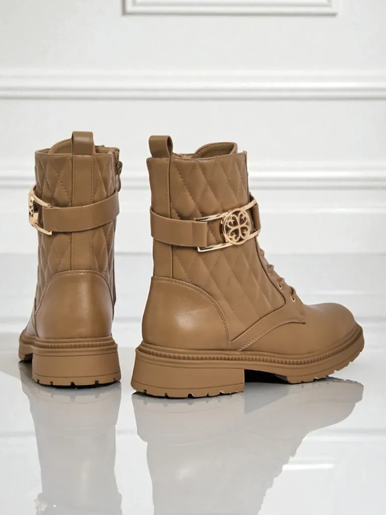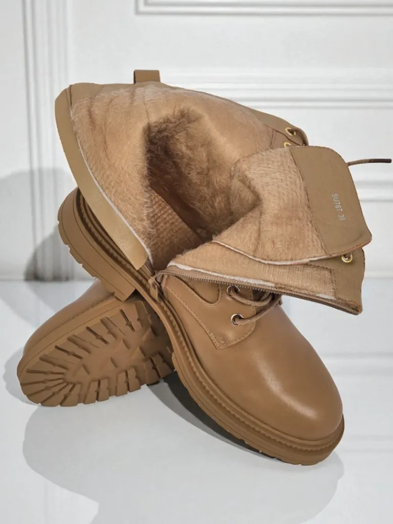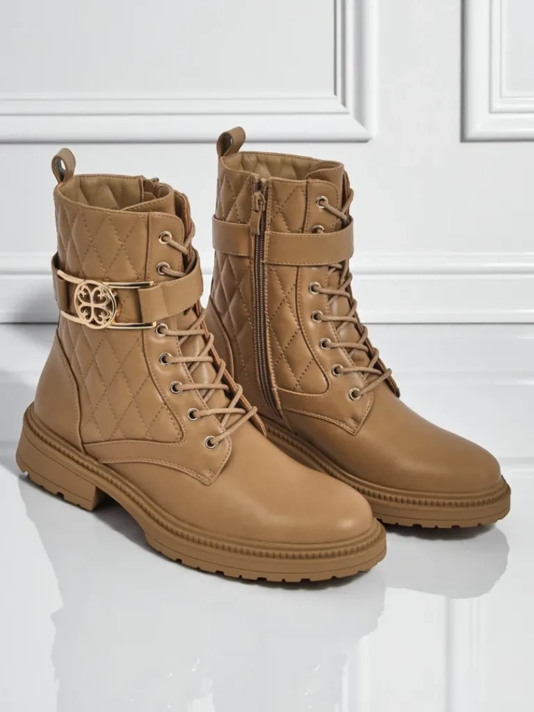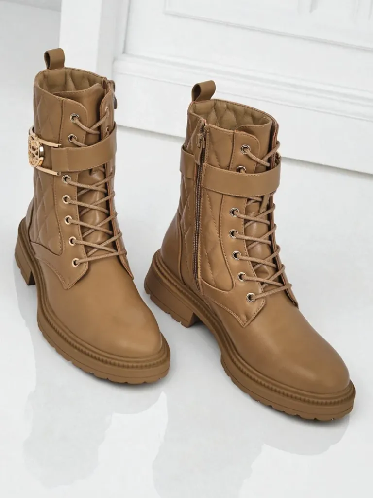 - Pikowane botki damskie z ekologicznej skóry, delikatnym ociepleniem w formie futerka, sznurowane i zapinane na zamek. Styl i wygoda w jednym!