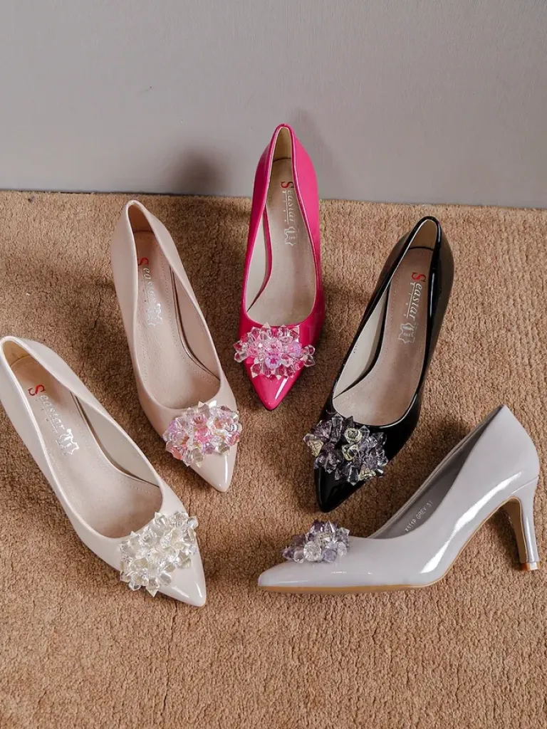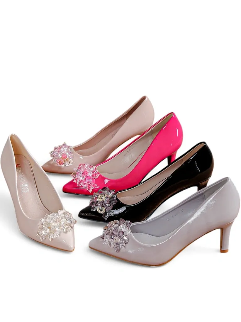 - Eleganckie damskie czółenka na szpilce, wykonane ze skóry ekologicznej lakierowanej. Środek buta jest wyłożony skórą naturalną, a nosek w szpic. Klasa i szyk mody!