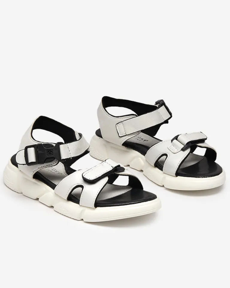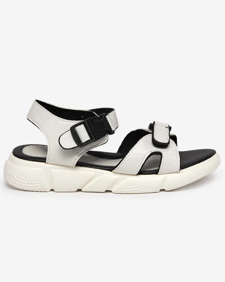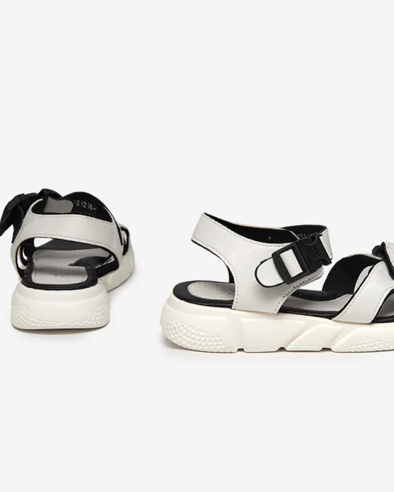 - Wyjątkowe dziewczęce sandały wykonane z błyszczącej tkaniny. Obuwie zapinane na klamrę wokół kostki oraz na rzep przy palcach. W środku miękka, eko skórzana wkładka. Sprawdzą się na co dzień!