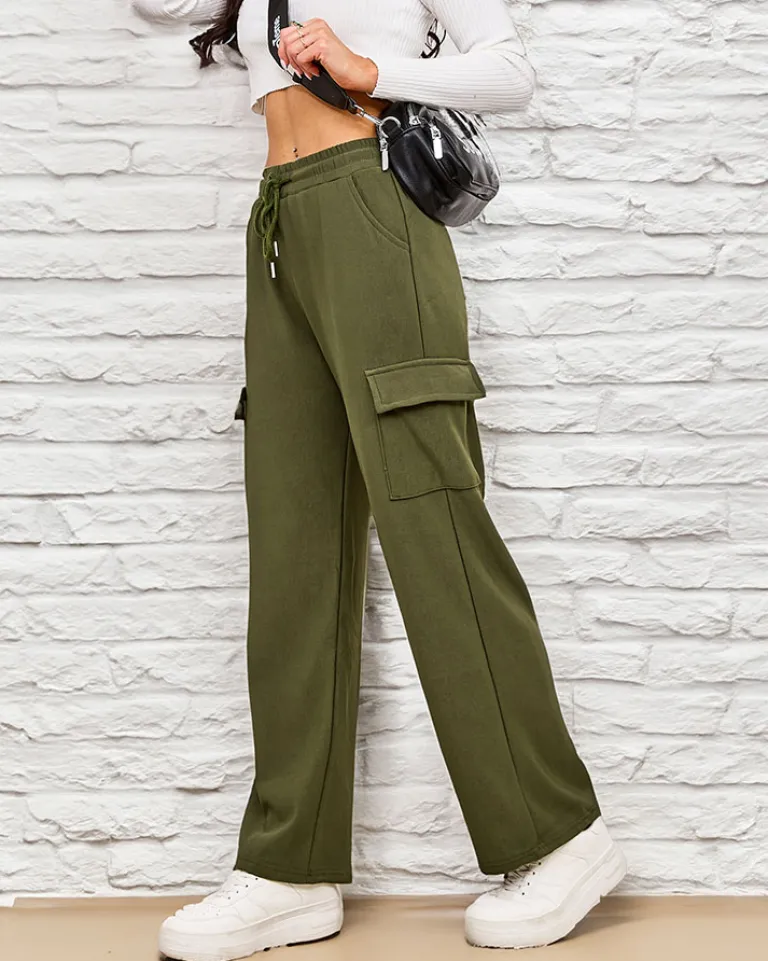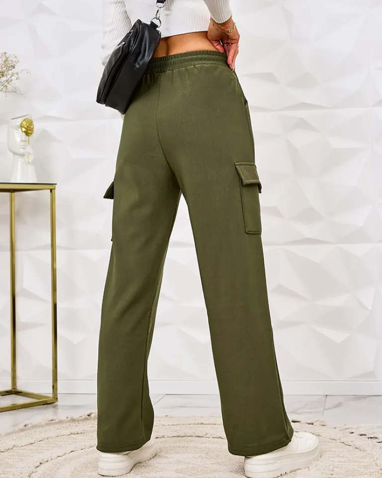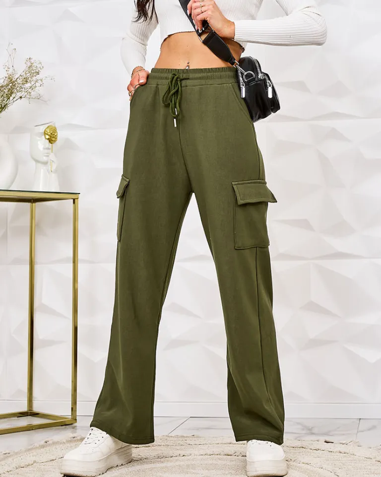 - Kultowe damskie szerokie spodnie typu bojówki, wykonane z przyjemnej tkaniny. Model posiada rozciągliwą gumkę w pasie i cztery wsuwane kieszenie. Ocieplany futerkiem. UWAGA: Dokładność pomiaru (+/-) 1 cm.