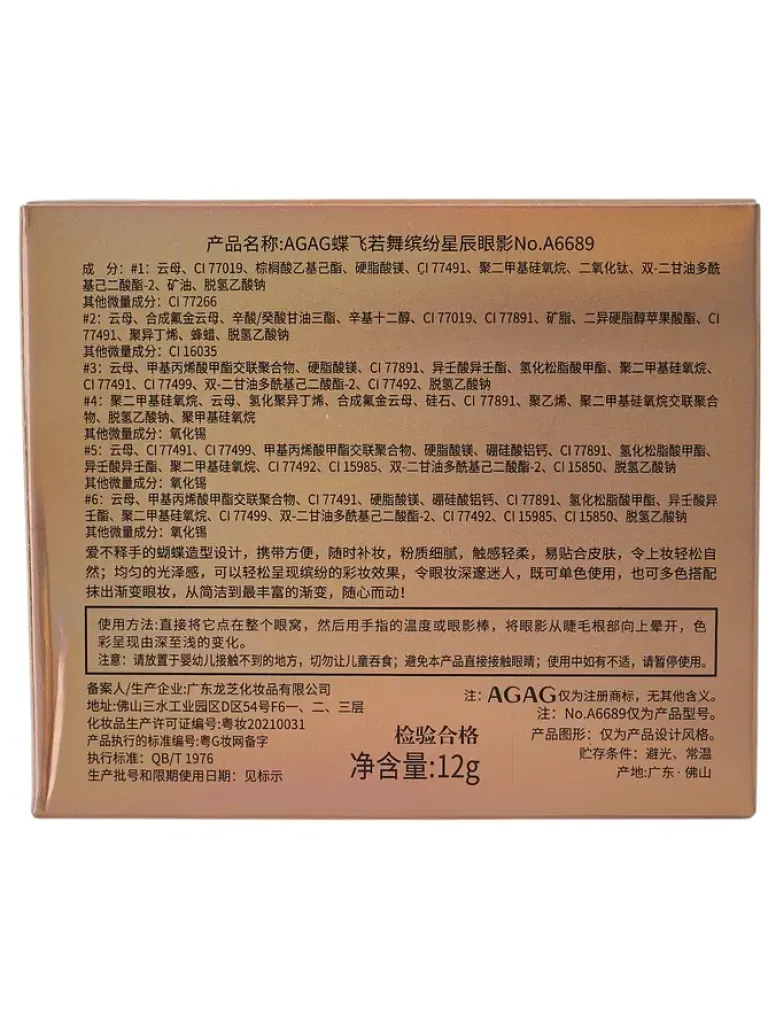 - Paletka 6 cieni do powiek w kształcie motyla oferuje szeroką gamę kolorów, które łatwo łączą się ze sobą, tworząc subtelne lub intensywne looki. Dzięki wysokiej jakości formułom, cienie są trwałe, łatwe w aplikacji i idealnie podkreślają spojrzenie.