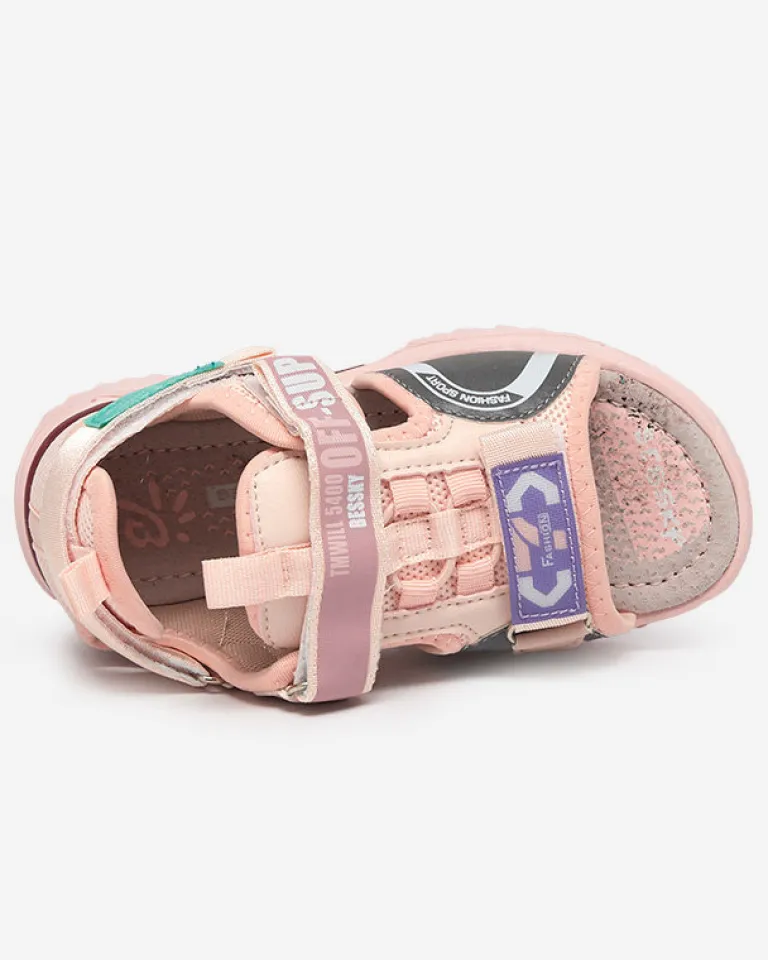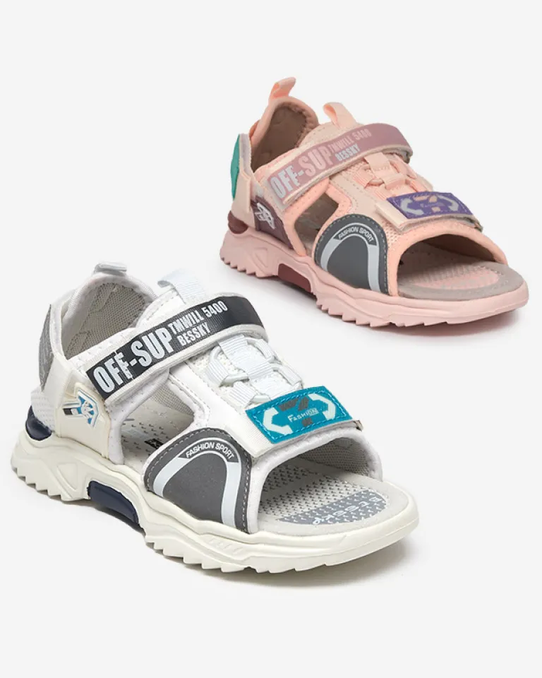 - Modne i wygodne sandały dziecięce na płaskiej podeszwie. Wykonane z połączenia tkaniny i eko-nubuku, zapinane na rzepy. Model z zakrytą piętą – świetne na wakacyjne dni!