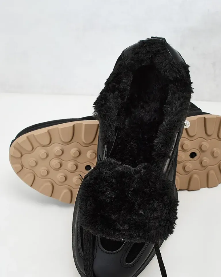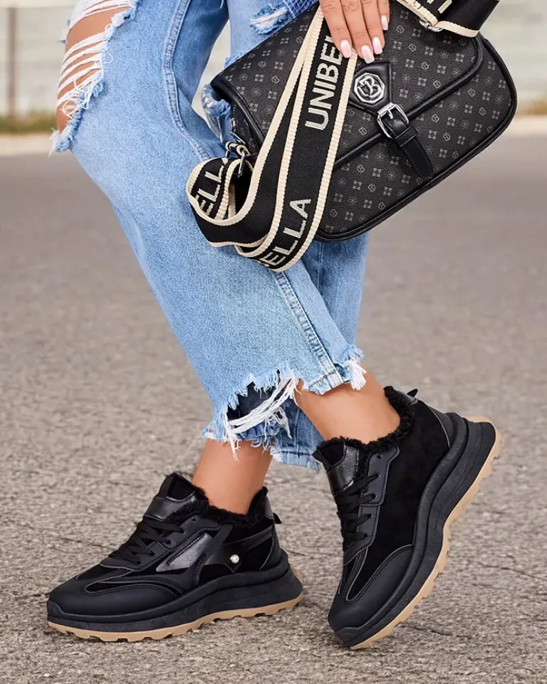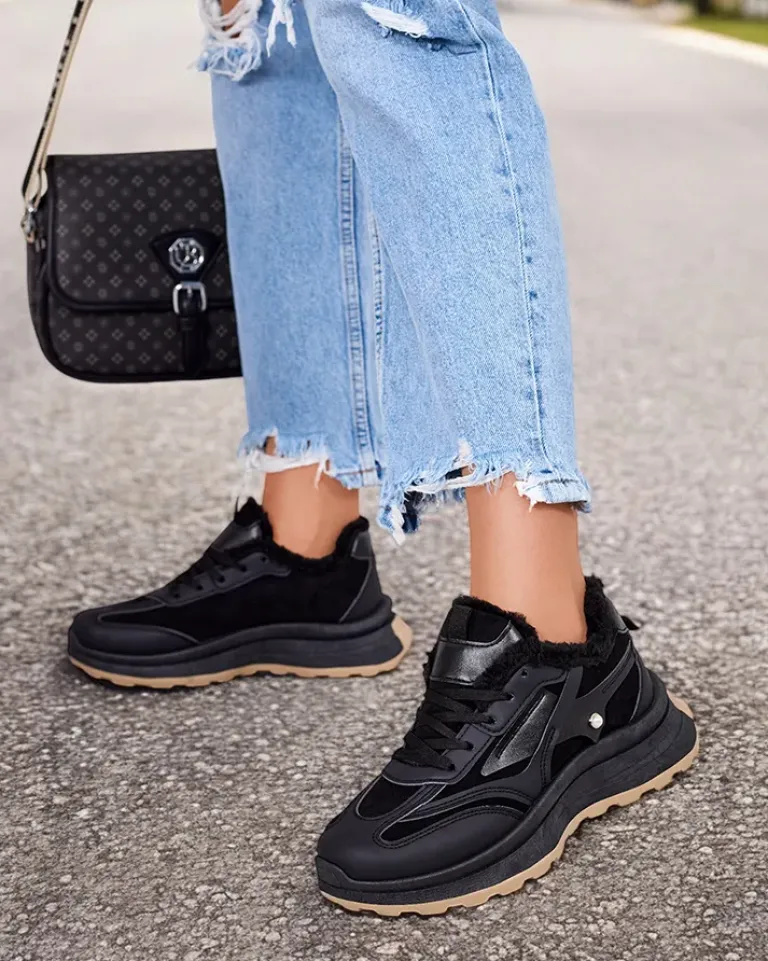 - Damskie ocieplane buty sportowe typu sneakersy na grubszej podeszwie. Sznurowana cholewka wykonana z zamszowej skóry ekologicznej z elementami eko skóry. W środku miękkie futerko. Super dodatek do Twoich zimowych outfitów w stylu casual!