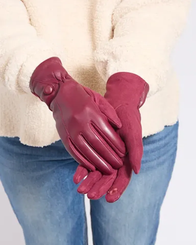 - Stylowe damskie rękawiczki wykonane ze skóry ekologicznej i przyjemnej tkaniny po stronie wewnętrznej. Para jest ocieplana delikatnym futerkiem. Idealna baza do wielu jesienno-zimowych looków!