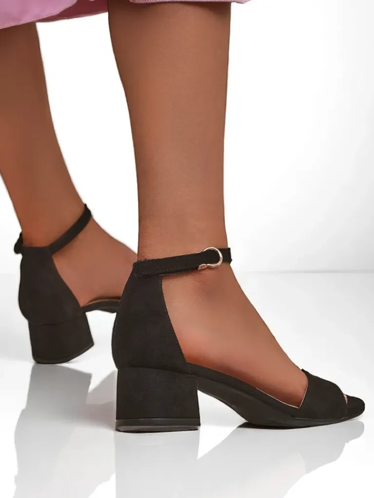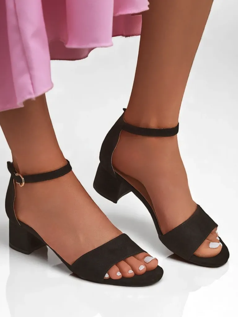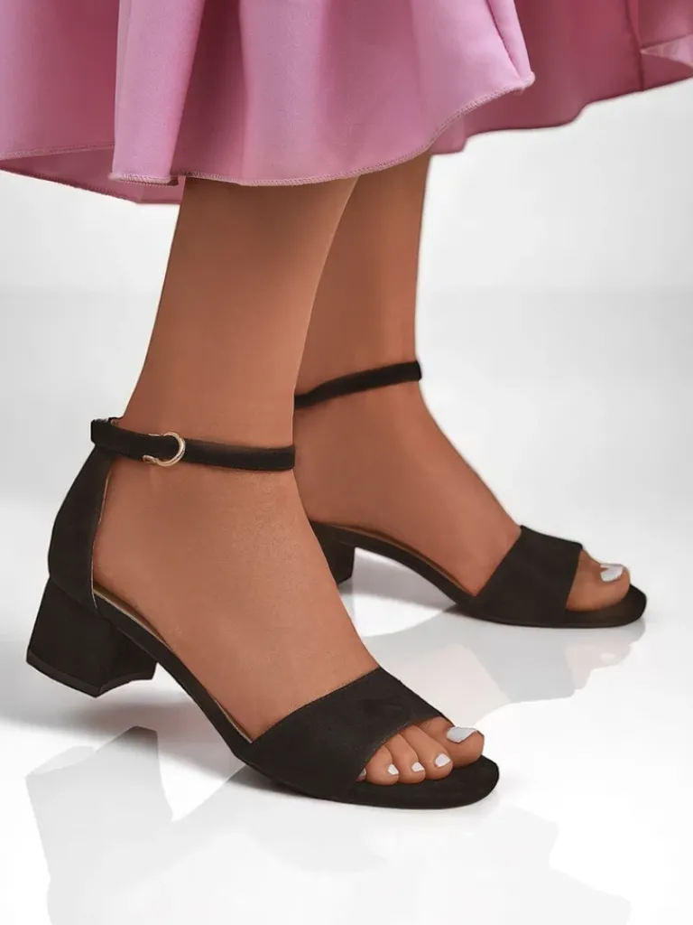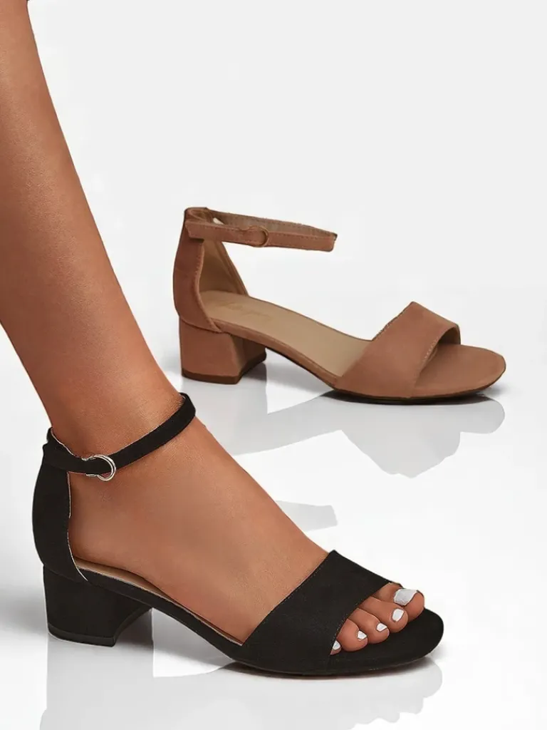 - Sandały na niskim obcasie z eko zamszu, z wygodną wkładką z eko skóry. Zapinane na sprzączkę, idealne na lato – eleganckie, wygodne i lekkie w codziennym noszeniu.