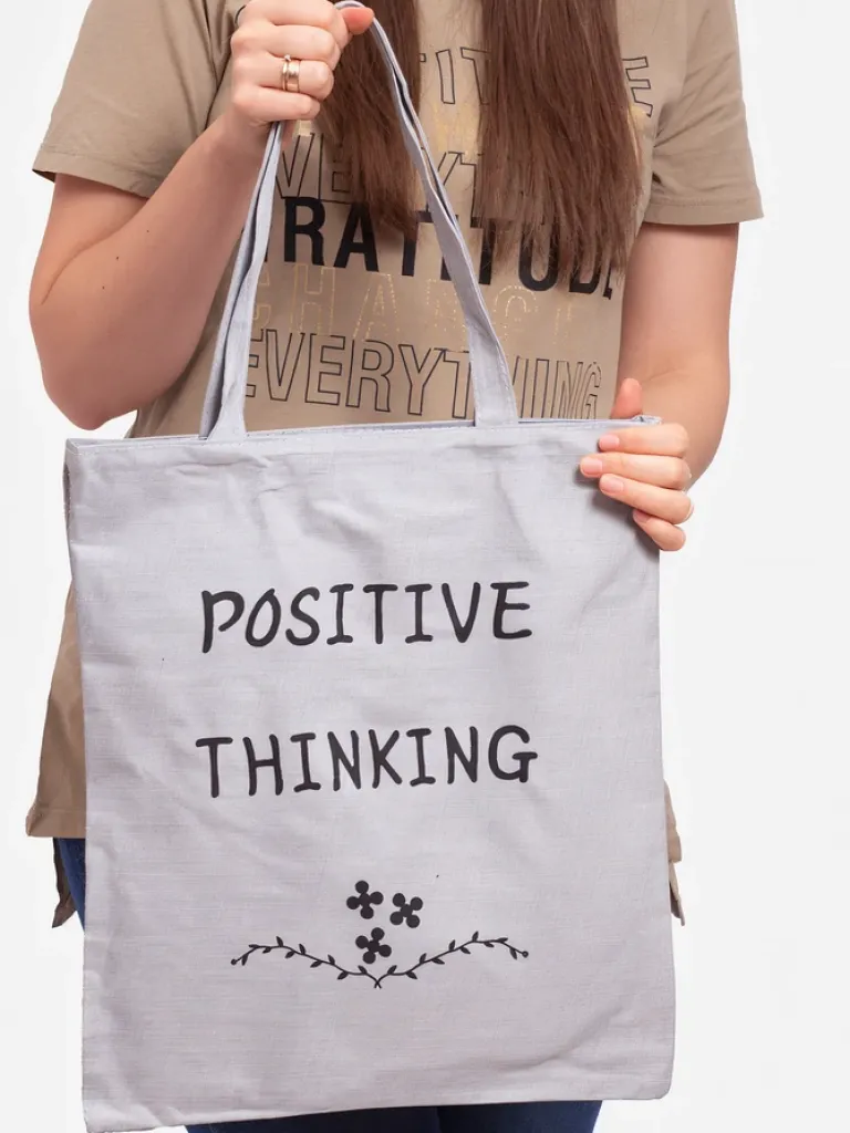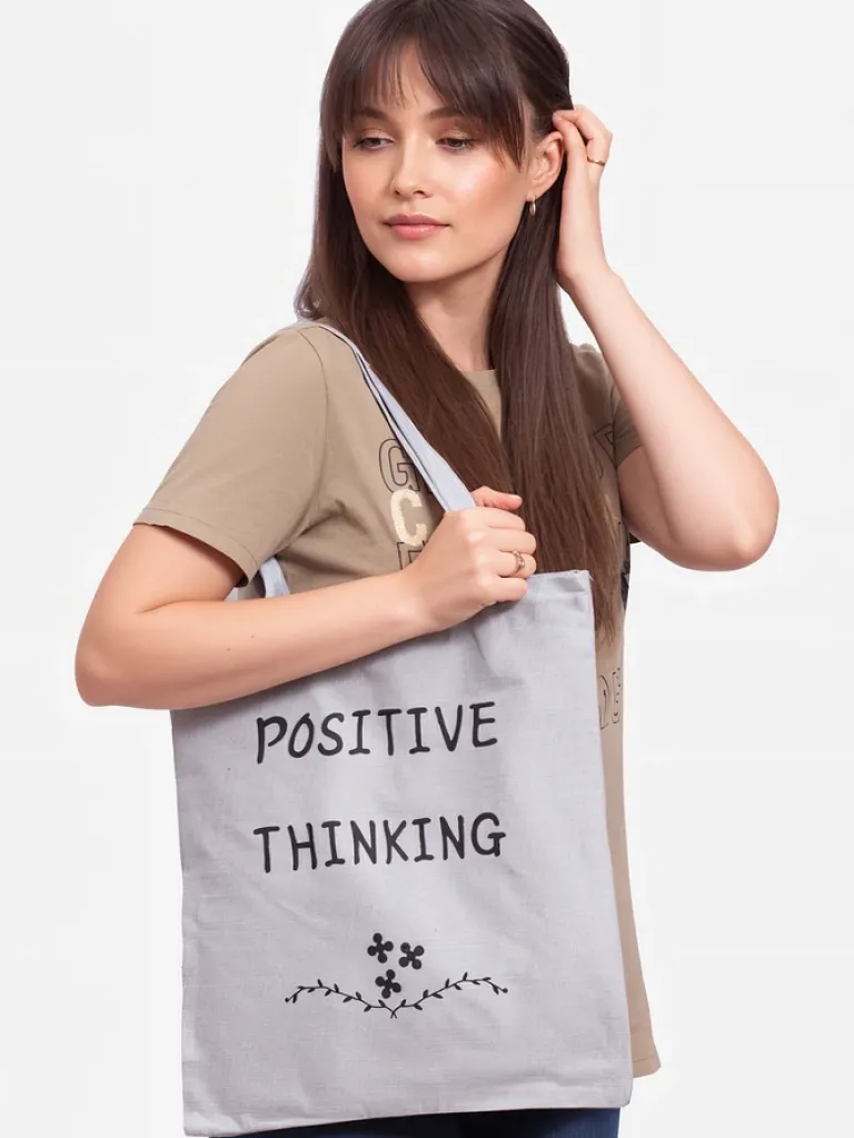 - Klasyczna torebka na ramię wykonana z miękkiej tkaniny z ozdobnym białym nadrukiem na przodzie. Zapinana na zamek błyskawiczny. W środku duża przegroda i mała zasuwana kieszonka. Idealna na zakupy!
