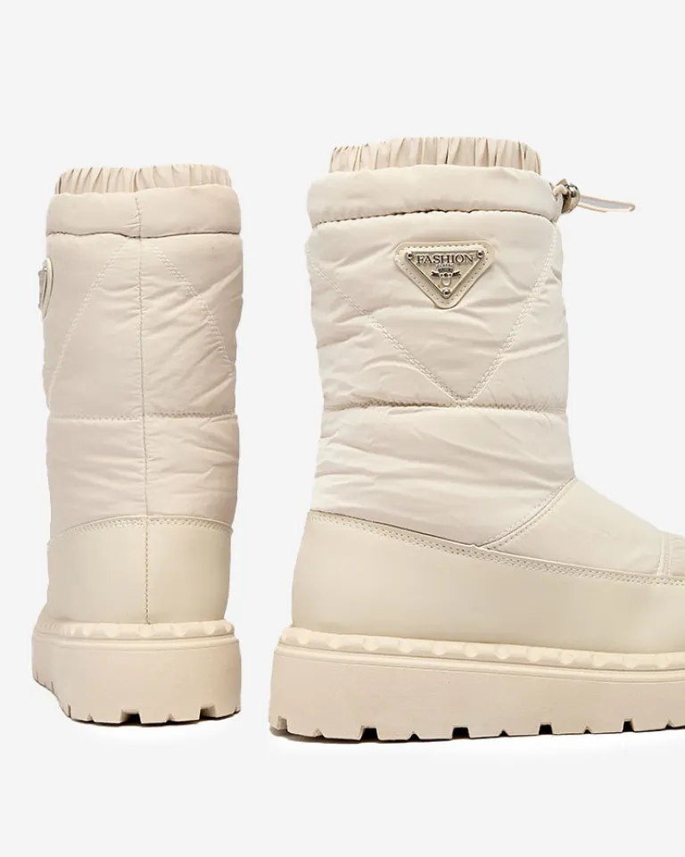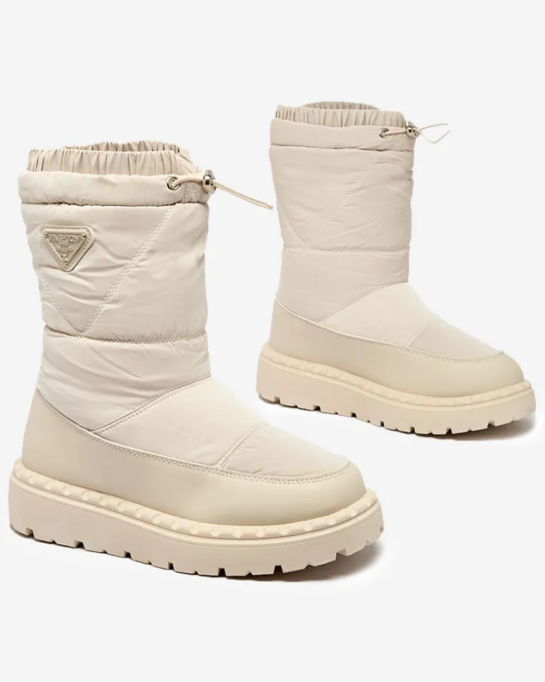 - Rewelacyjne damskie obuwie typu śniegowce. Cholewka wykonaną z materiału a’la cerata i wstawkami ze skóry ekologicznej. W środku ocieplenie w formie futerka, obuwie posiada ściągacz. Idealne na zimowy czas!