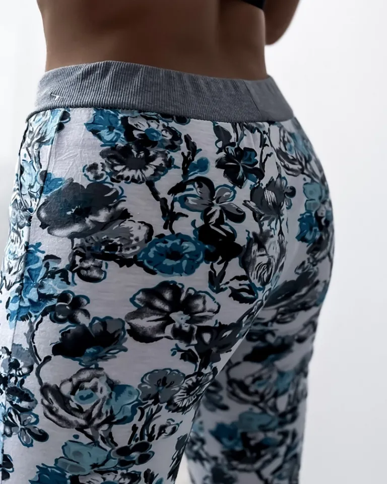 - Wygodne damskie spodenki z kieszeniami, wykonane z tkaniny bawełnianej w kwiaty. Model o długości 3/4, posiada gumę oraz wiązane toczki w pasie. UWAGA: Dokładność pomiaru (+/-) 1 cm.