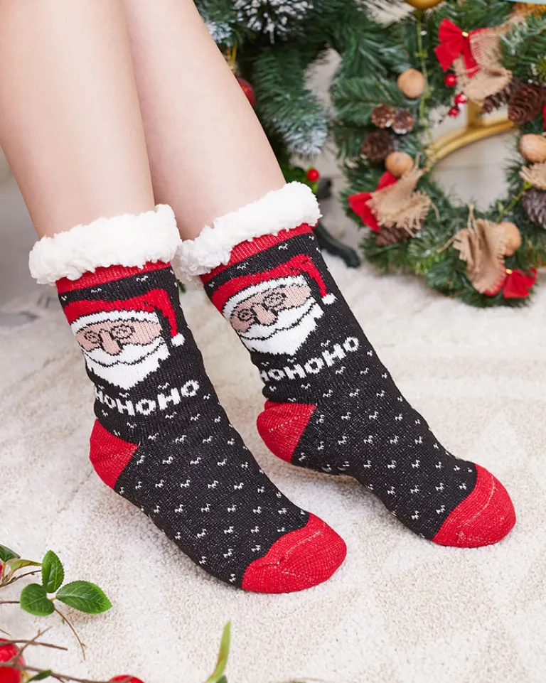 Outlet Czarne damskie skarpetki ze świątecznym wzorem Skarpetki