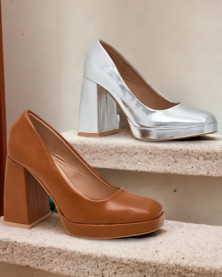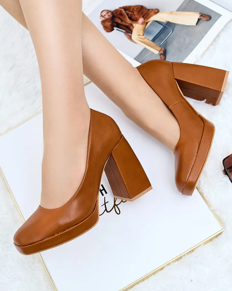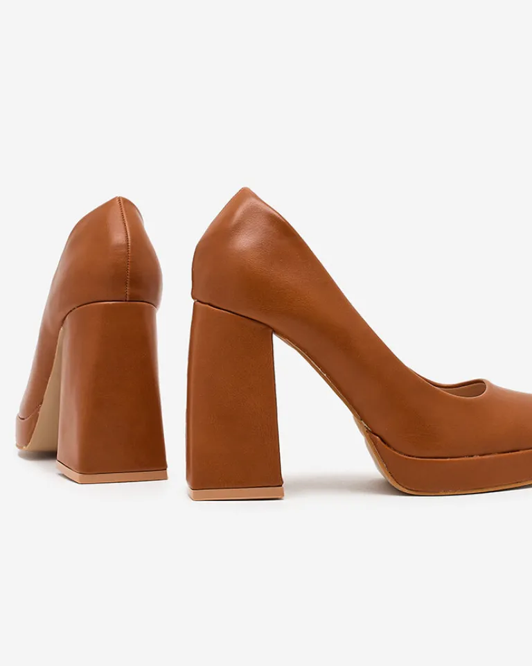 - Stylowe damskie czółenka na wysokim słupku i platformie. Model w całości wykonany ze skóry ekologicznej. Model wsuwany, idealny do biura!