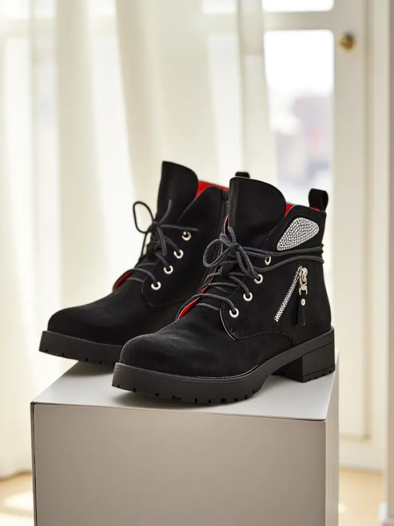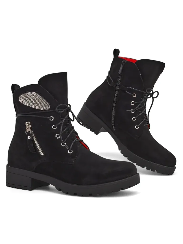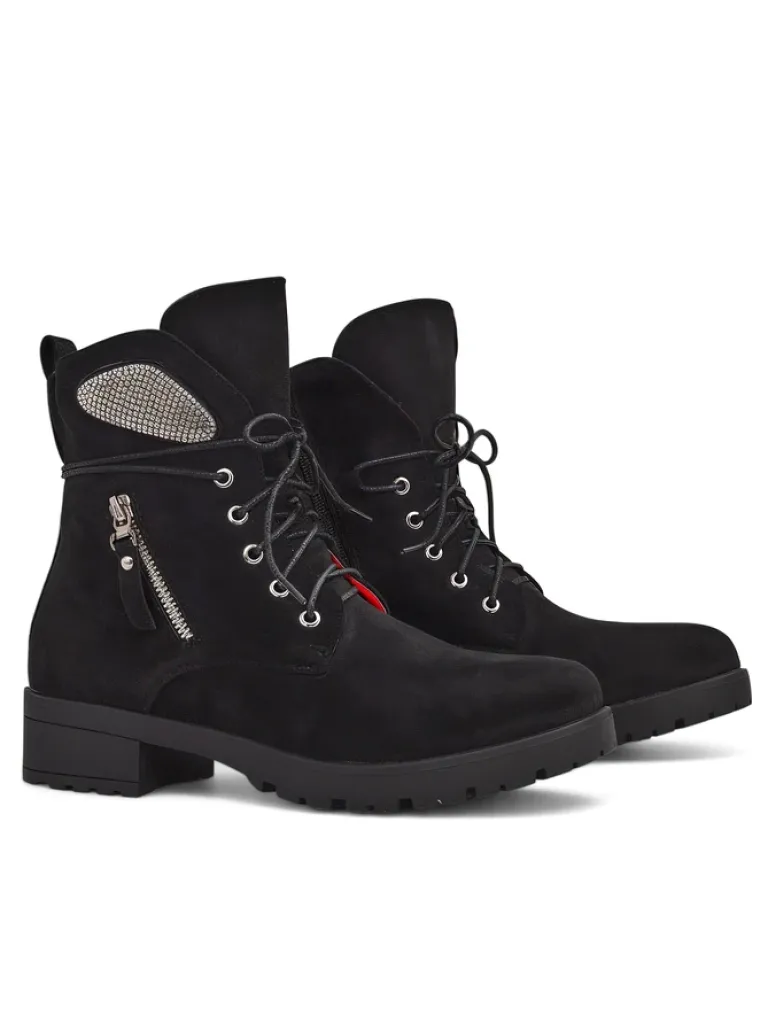 - Botki typu workery damskie to wyjątkowe obuwie łączące w sobie styl i wygodę. Wykonane ze skóry ekologicznej zamszowej i wypełnione delikatnym futerkiem. Model sznurowany i zapinany na zamek. Obuwie posiada subtelne ozdoby.