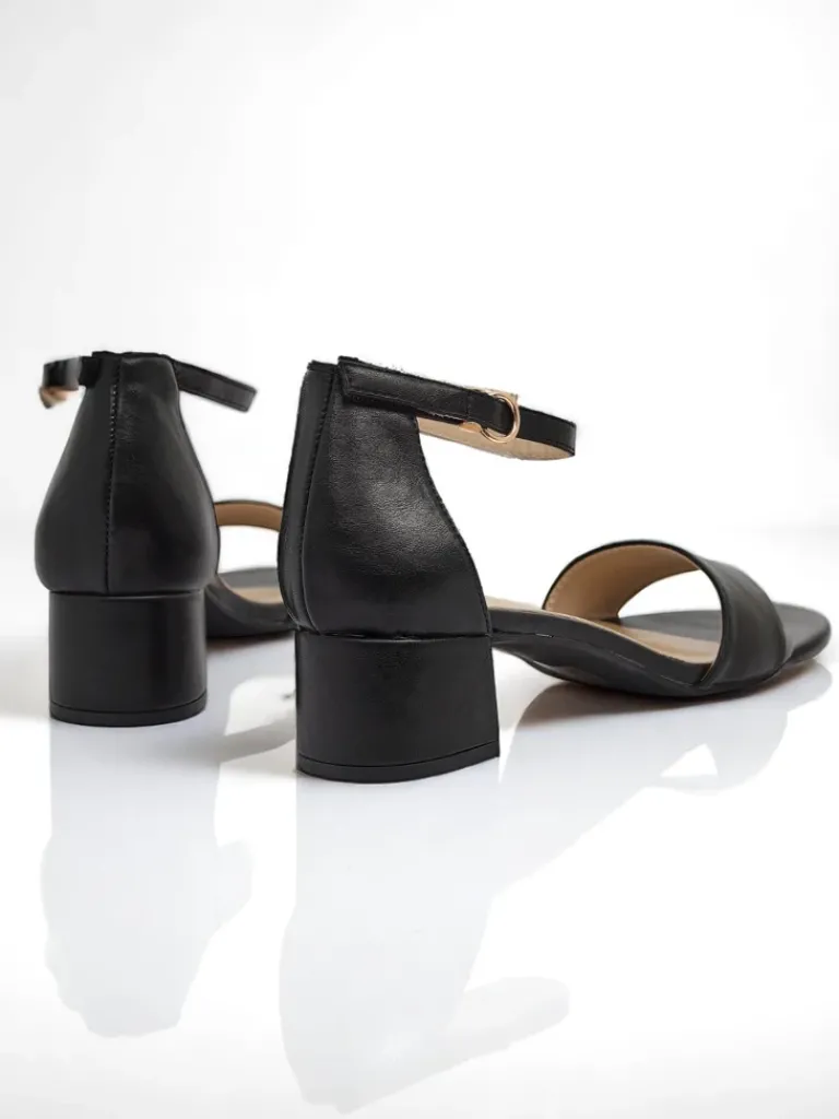 - Sandały na niskim obcasie z eko skóry, z wygodną wkładką z eko skóry. Zapinane na sprzączkę, idealne na lato – eleganckie, wygodne i lekkie w codziennym noszeniu.