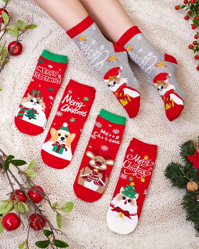 - Skarpety damskie z materiału bawełnianego wykończonego świątecznym wzorem. Skarpetki świetnie się sprawdzą na chłodniejsze wieczory!