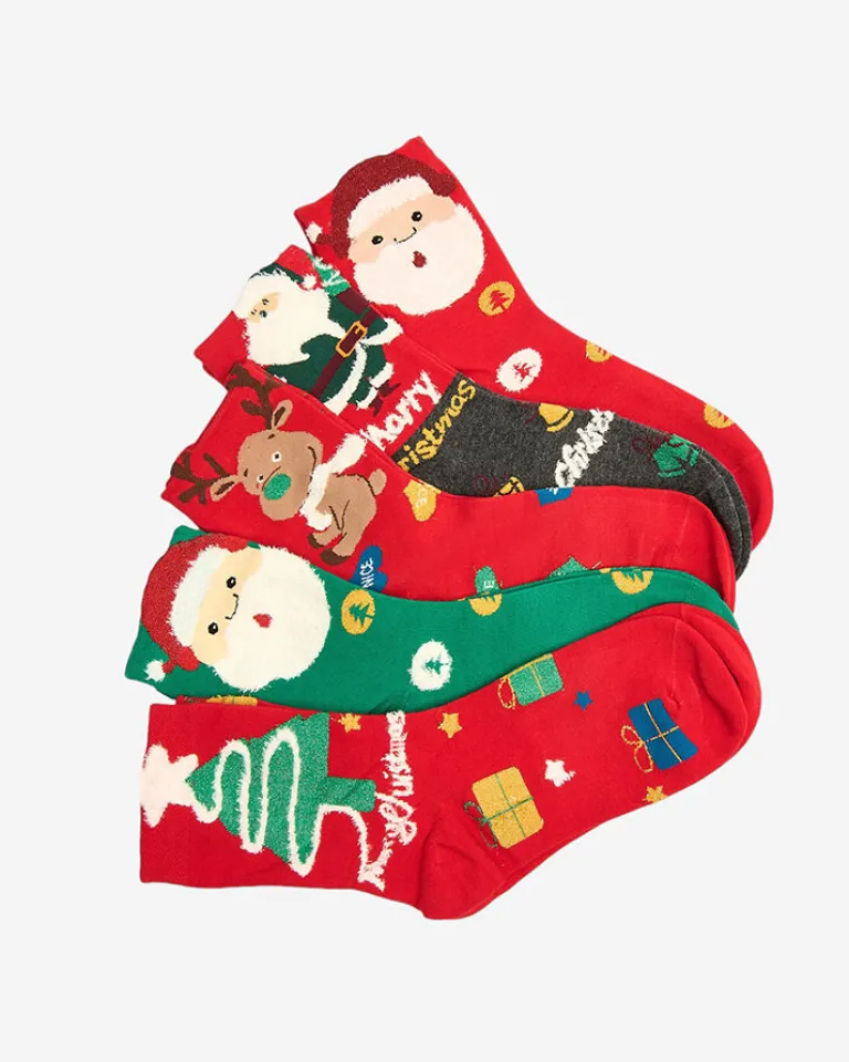 - Skarpety damskie z materiału bawełnianego wykończonego świątecznym wzorem. Model z uroczymi motywami – to idealny pomysł na prezent na gwiazdkę!