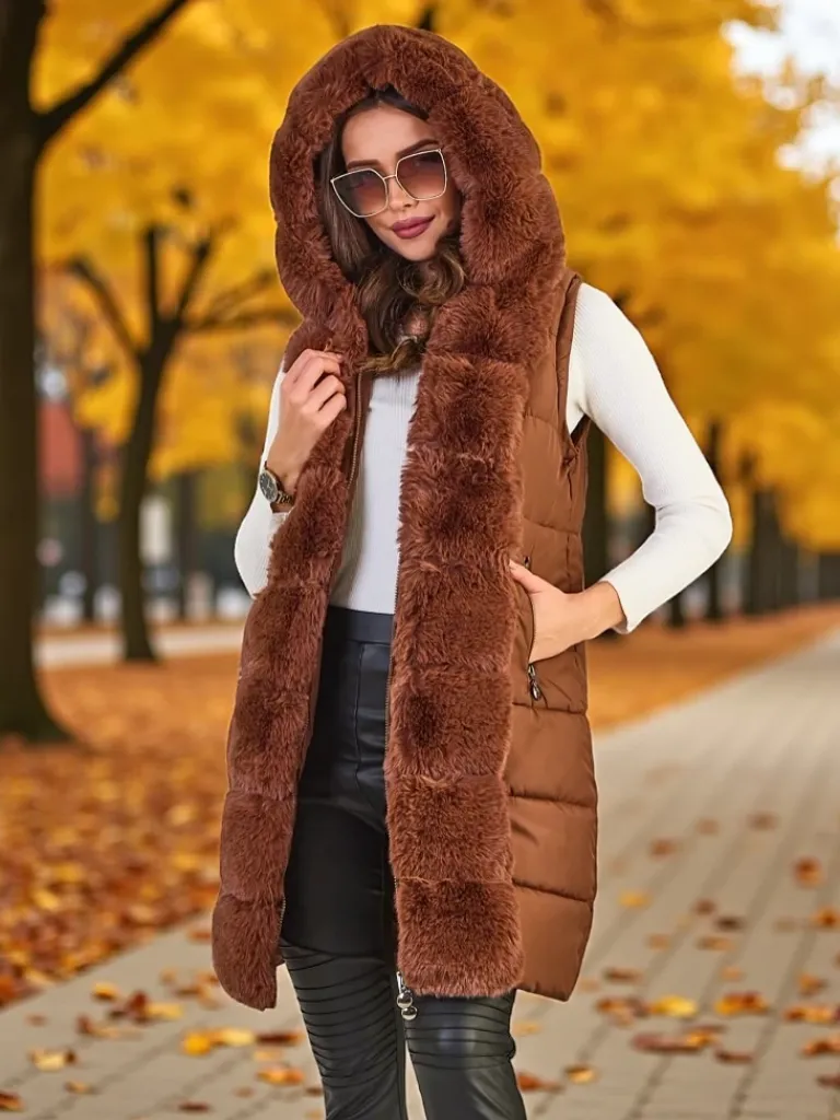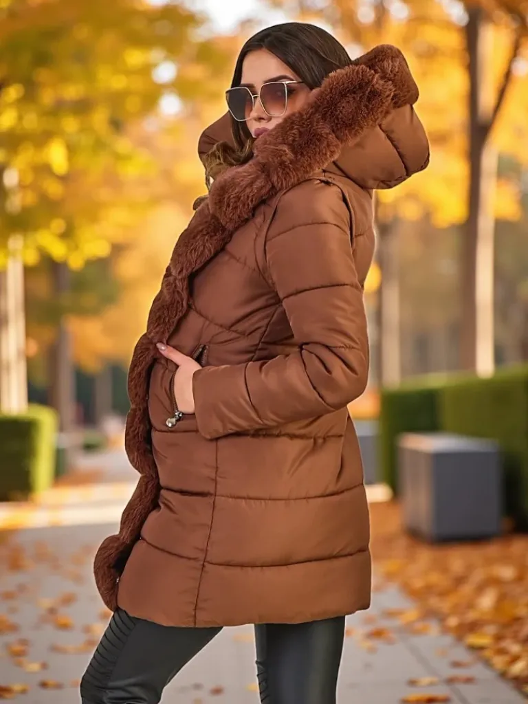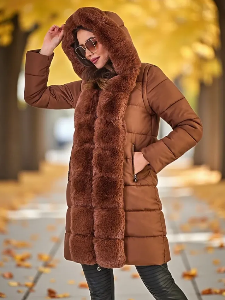 - Damska ocieplana kurtka zimowa z kapturem i futerkiem. Model zapinany suwakiem, posiada 2 kieszenie. Dodatkowo odpinane rękawy, co daje możliwość noszenia kurtki jako bezrękawnik. Idealna propozycja na chłodniejsze dni!