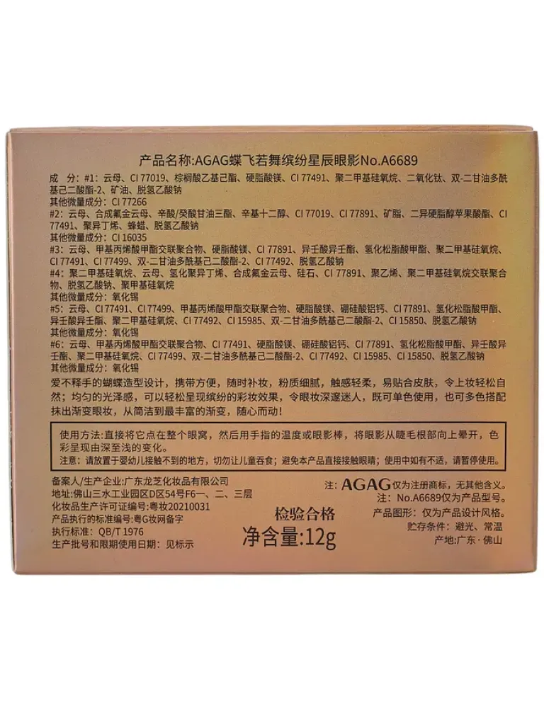 - Paletka 6 cieni do powiek w kształcie motyla oferuje szeroką gamę kolorów, które łatwo łączą się ze sobą, tworząc subtelne lub intensywne looki. Dzięki wysokiej jakości formułom, cienie są trwałe, łatwe w aplikacji i idealnie podkreślają spojrzenie.