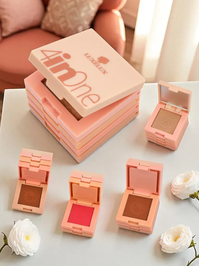- Kompaktowa paletka 4 w 1 to must-have w każdej kosmetyczce! Zawiera rozświetlacz, cień do powiek, róż i bronzer – idealna do szybkiego, kompletnego makijażu w każdej sytuacji.