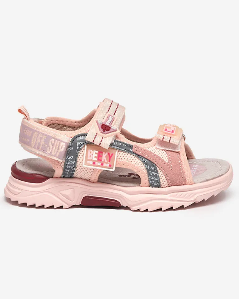 - Ponadczasowe sandały dziecięce na gumowej podeszwie, wykonane z materiału tkaninowego. Szerokość obuwia można regulować za pomocą rzep. Wkładka jest wyłożona skórą ekologiczną nubuk. Doskonale sprawdzą się na co dzień.