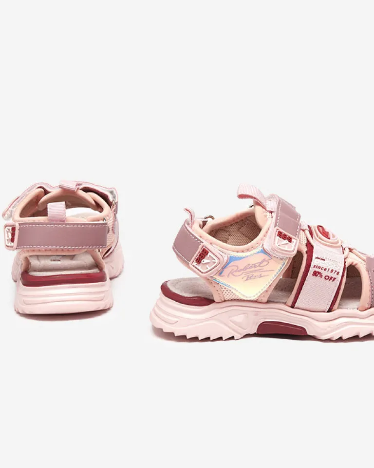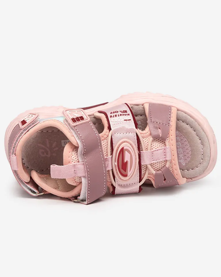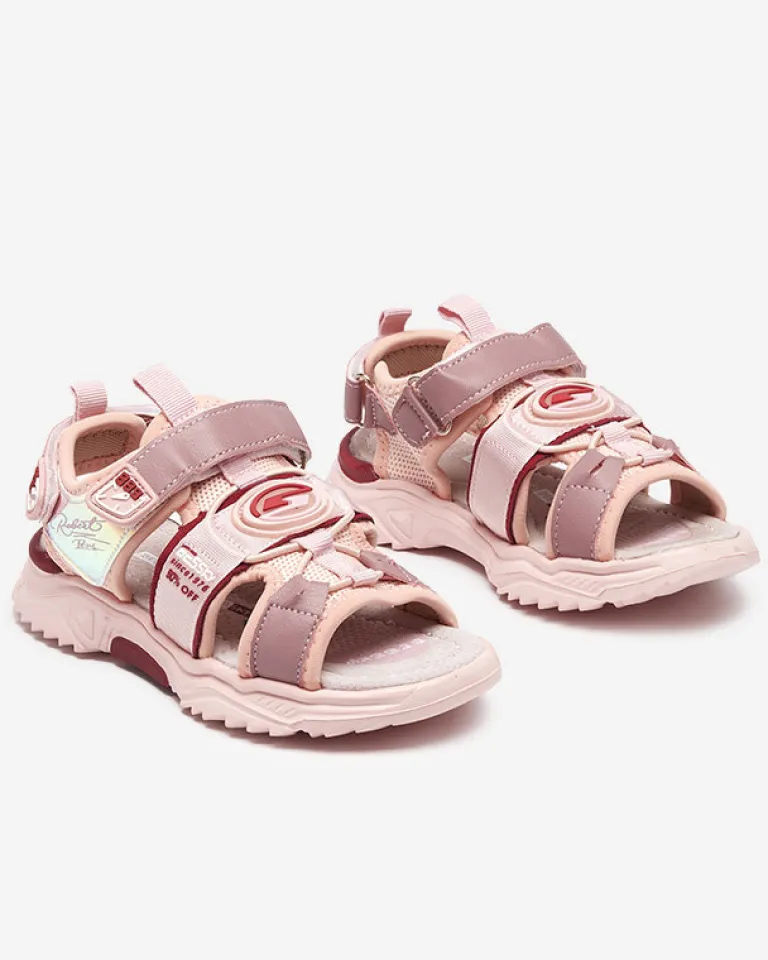 - Dziewczęce sandały na gumowej podeszwie, wykonane z połączenia skóry ekologicznej oraz tkaniny. Szerokość obuwia można regulować za pomocą zapięcia na rzepy. Wkładka jest wyłożona skórą ekologiczną. Idealne na wakacyjne wycieczki!