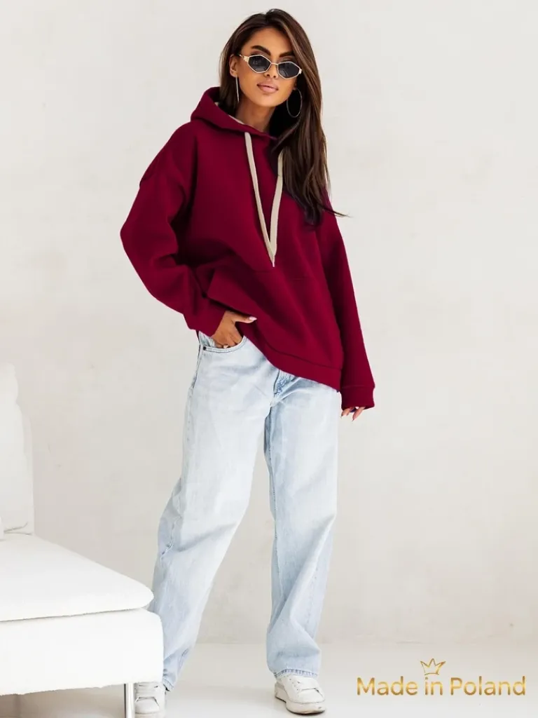 - Ocieplana wiskozowa bluza damska oversize. Model posiada dwukolorowy kaptur z troczki. Świetna propozycja na co dzień! UWAGA: Dokładność pomiaru (+/-) 1 cm. Wymiary mierzone na płasko.