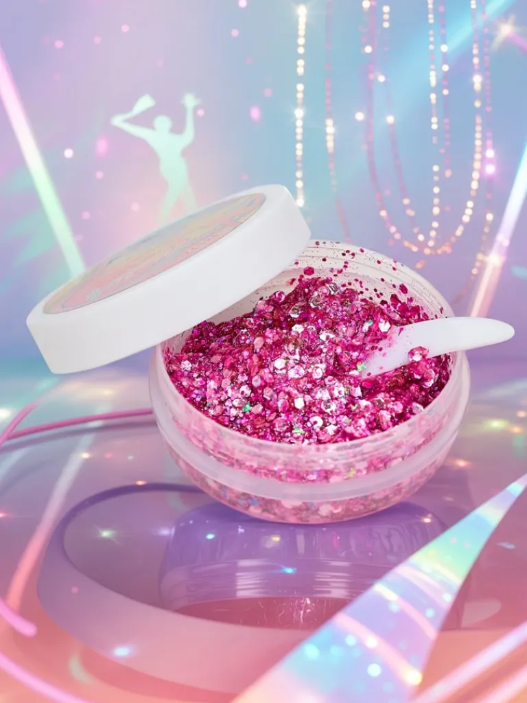 - Brokatowy żel do zdobienia twarzy – idealny na festiwale i imprezy. Łatwy w aplikacji, szybko schnie i długo się utrzymuje. Dodaje blasku i wyjątkowego efektu glamour.