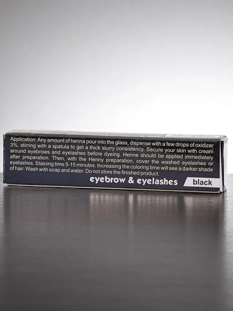 - Czarna henna proszkowa do brwi i rzęs intensywnie podkreśla spojrzenie, nadając głęboki, trwały kolor. Naturalna formuła zapewnia efekt wyrazistych brwi i rzęs nawet do 2 tygodni. Idealna do domowej koloryzacji.