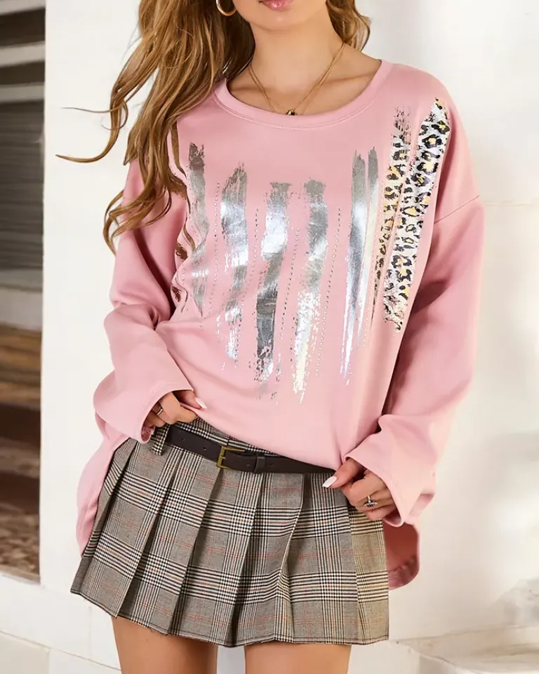 - Oryginalna damska bluzka z okrągłym dekoltem, wykonana z przyjemnej i miękkiej tkaniny. Produkt o luźnym kroju, posiada ozdobny print. Model z długimi rękawami. Idealny wybór do tworzenia stylowych outfitów!