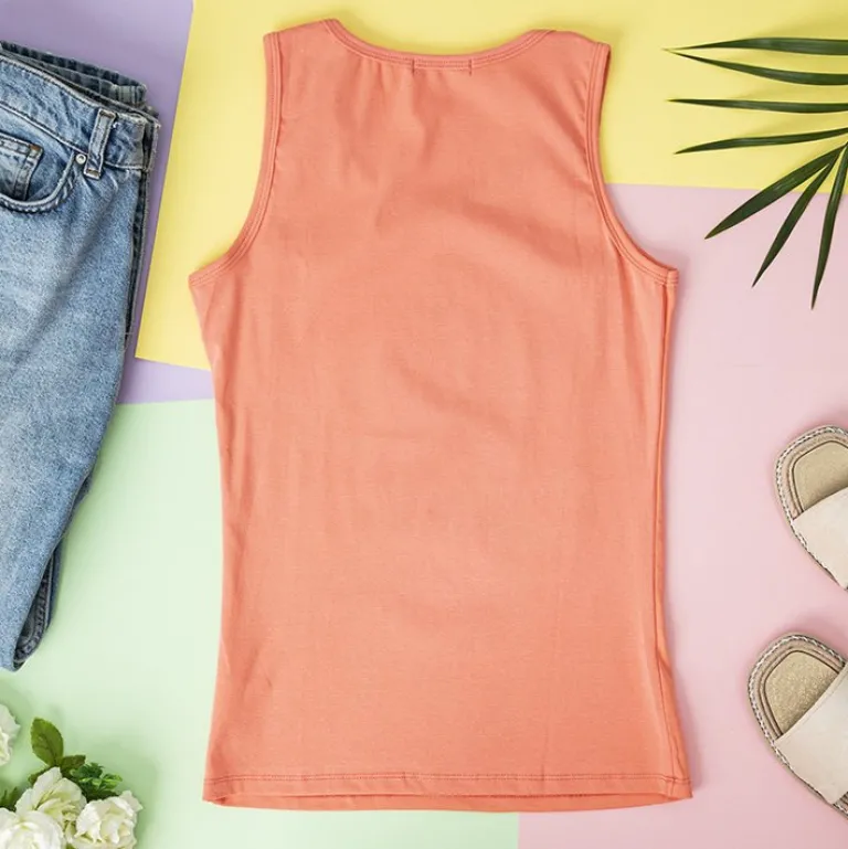 - Gustowny damski top na szerokich ramiączkach, wykonany z tkaniny bawełnianej. Model z okrągłym dekoltem, na przodzie zdobiony cyrkoniami.