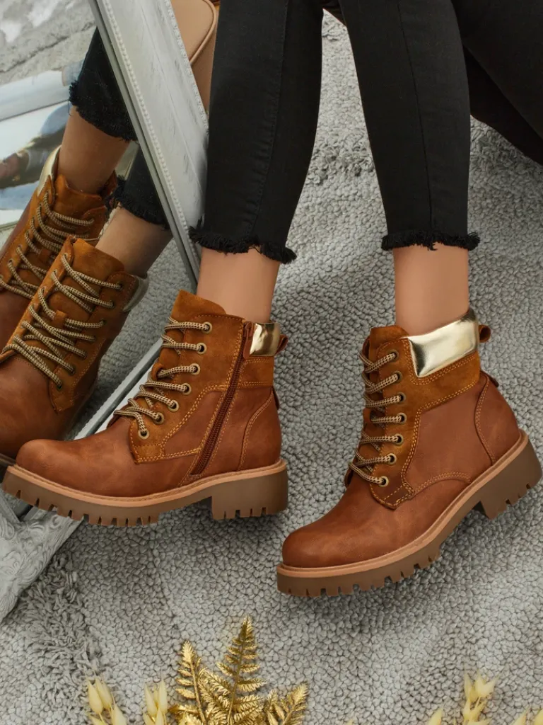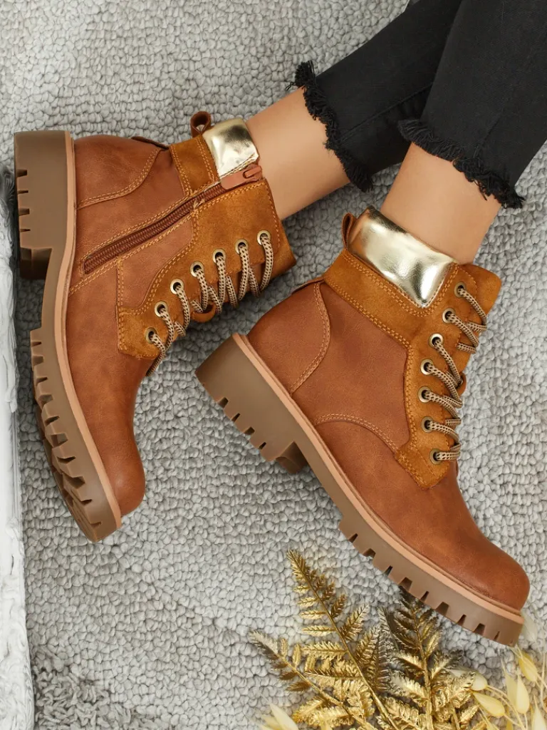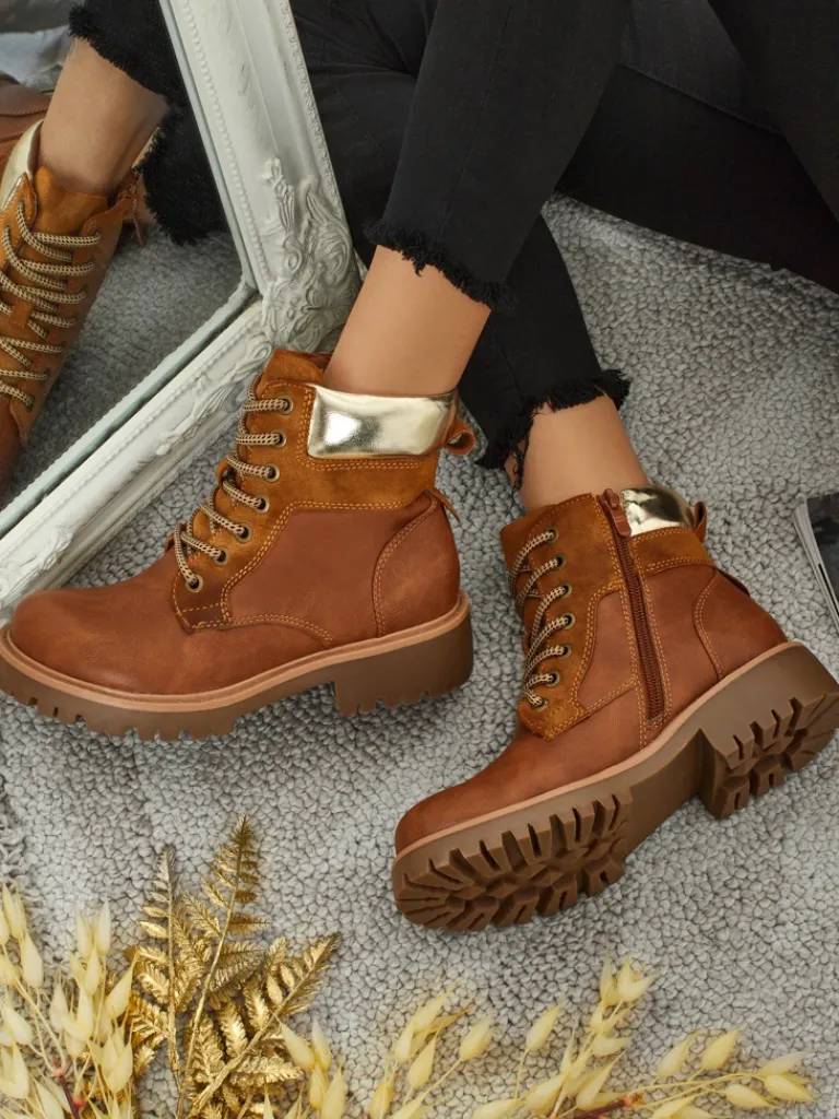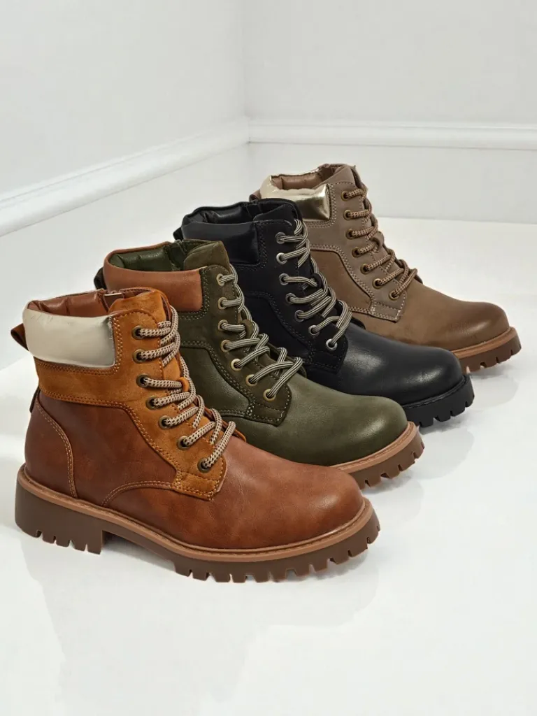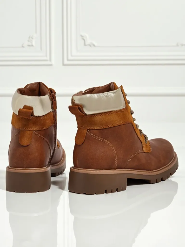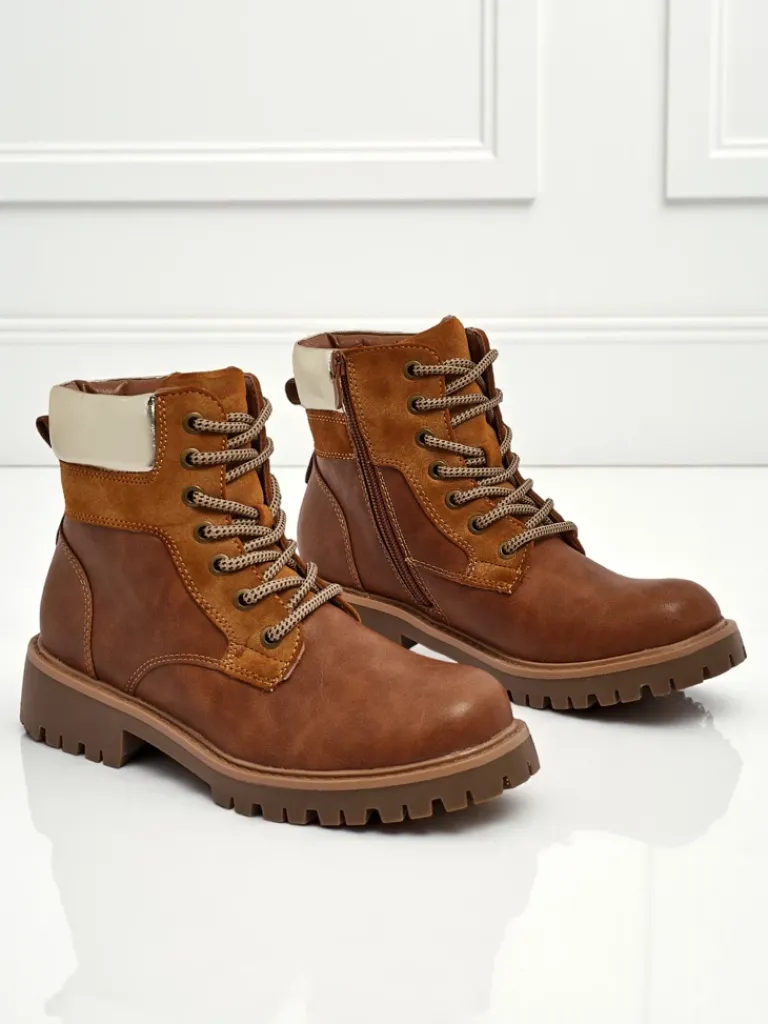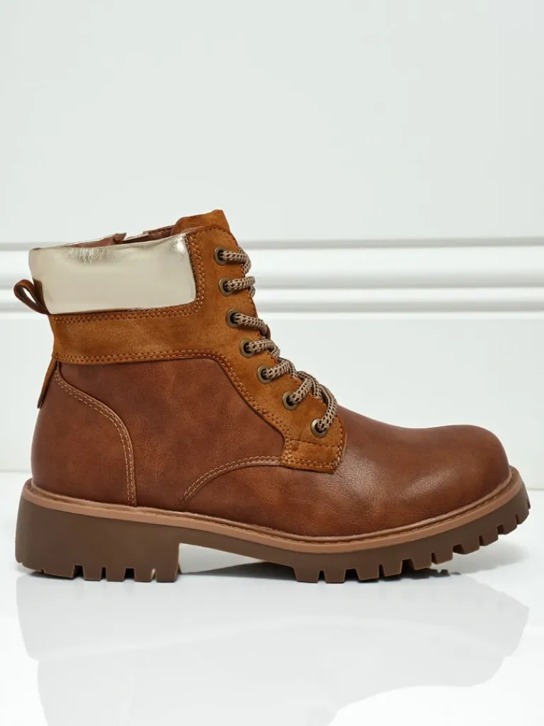 - Damskie trekkingowe trapery ze sznurowaną cholewką oraz suwakiem po boku . Materiał wykonania to skóra ekologiczna. Środek butów jest ocieplany futerkiem. Idealne na zimowy czas!