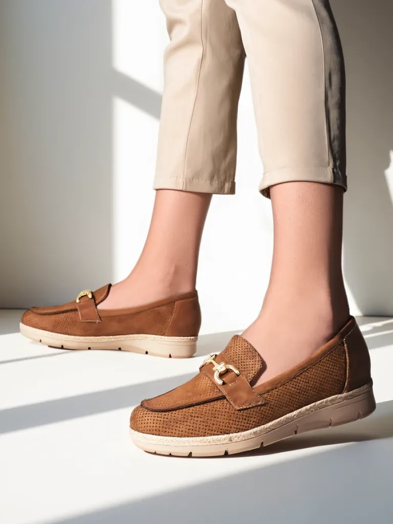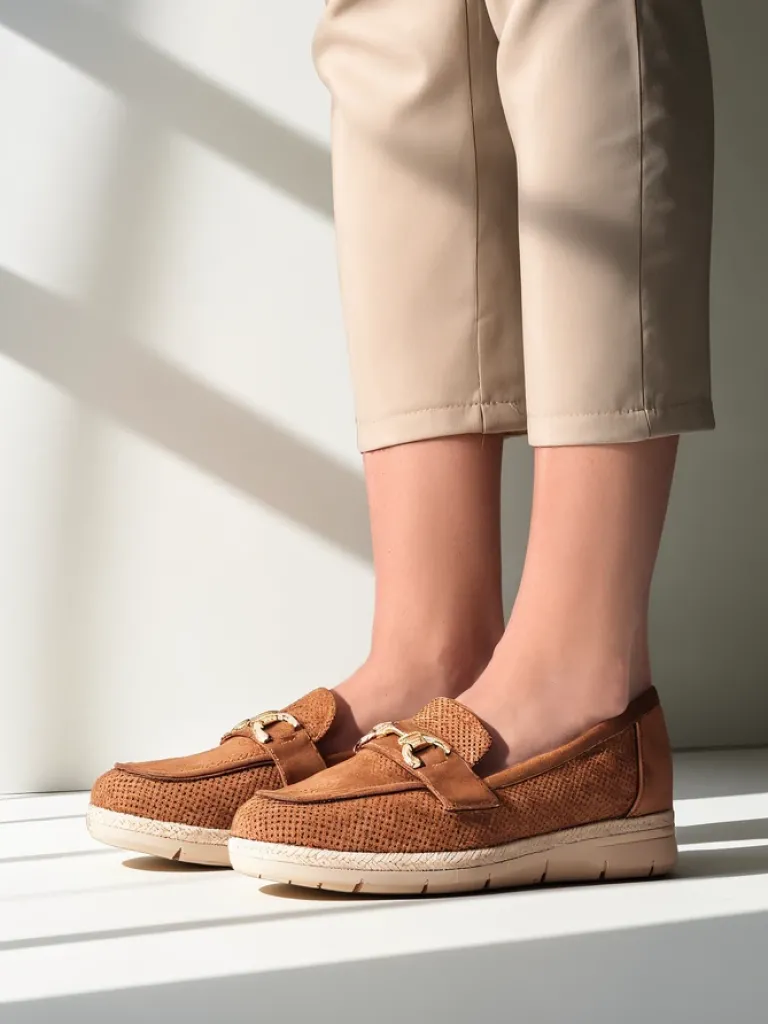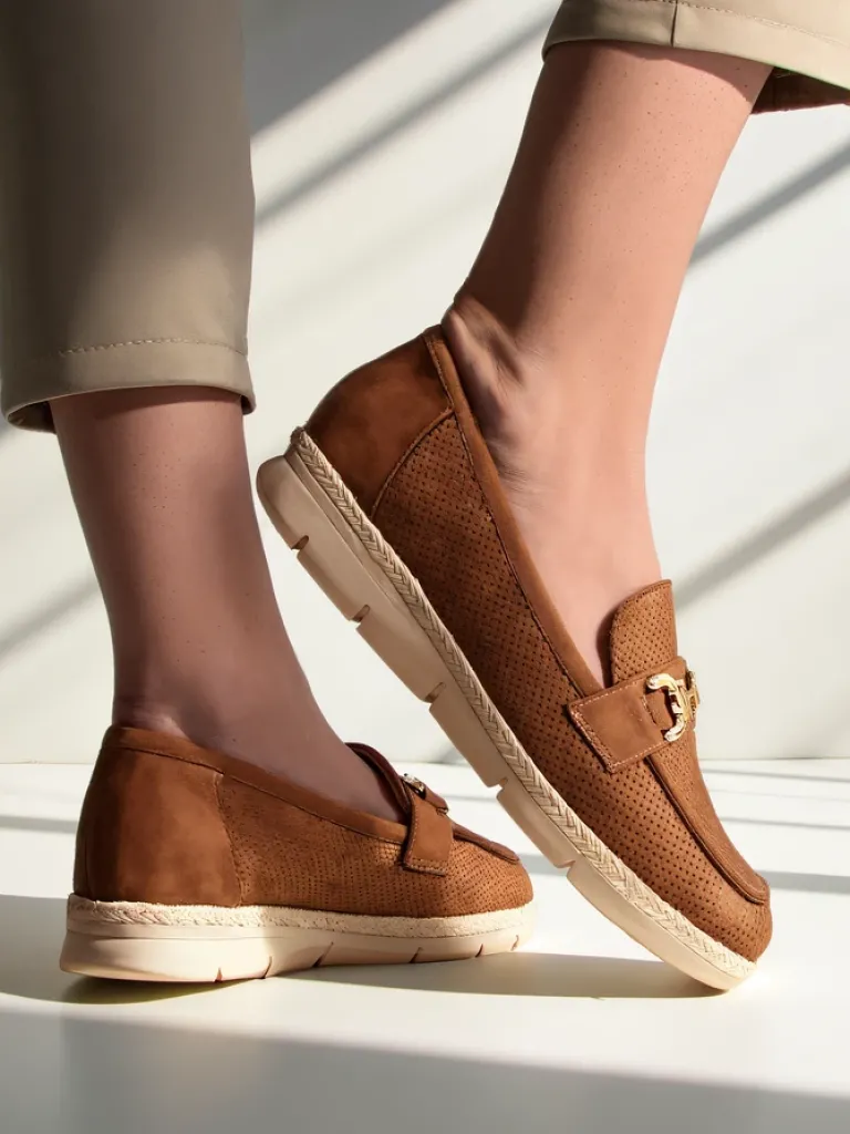 - Klasyczne damskie półbuty na płaskiej podeszwie. Model wykonany ze skóry ekologicznej zamszowej oraz eko skórzanej wkładki. Nosek zdobiony subtelną ozdobą. Must have w szafie każdej kobiety!
