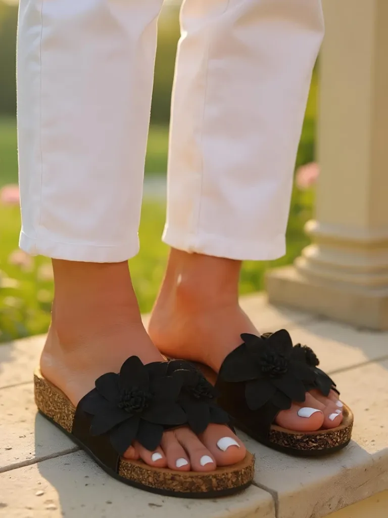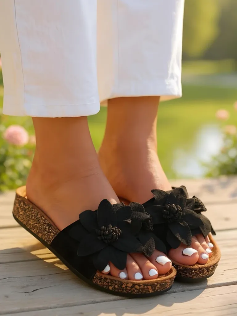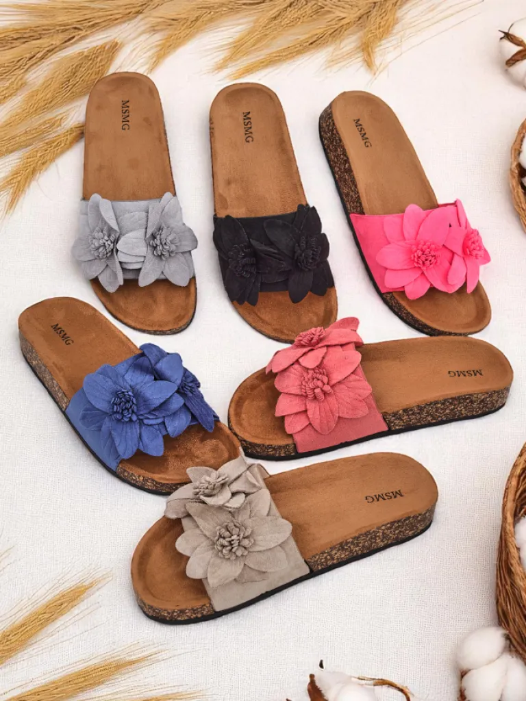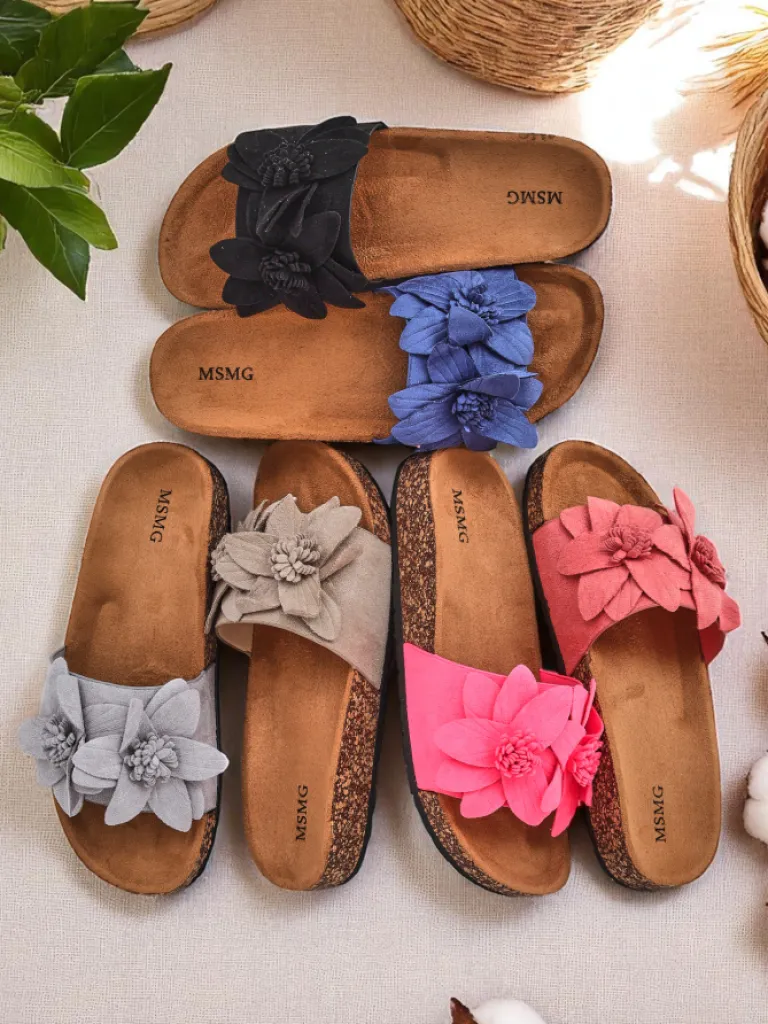 Sale Klapki damskie z kwiatuszkami Foules Klapki Płaskie