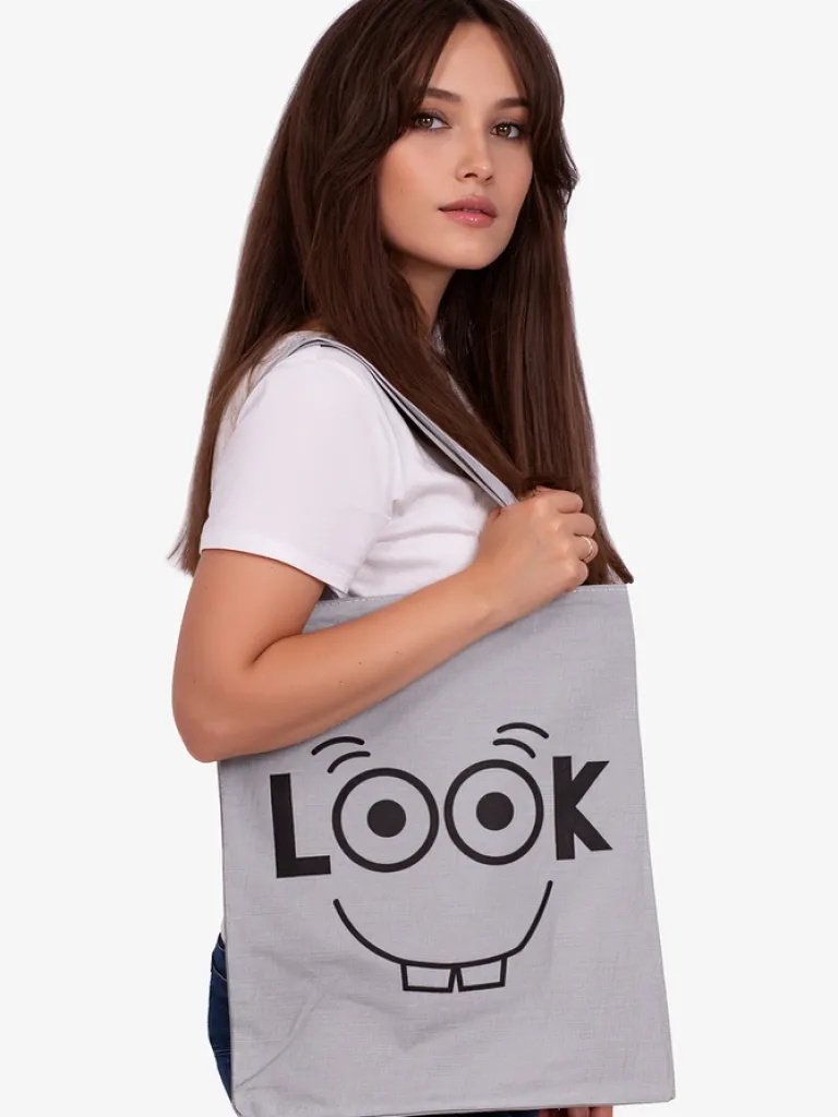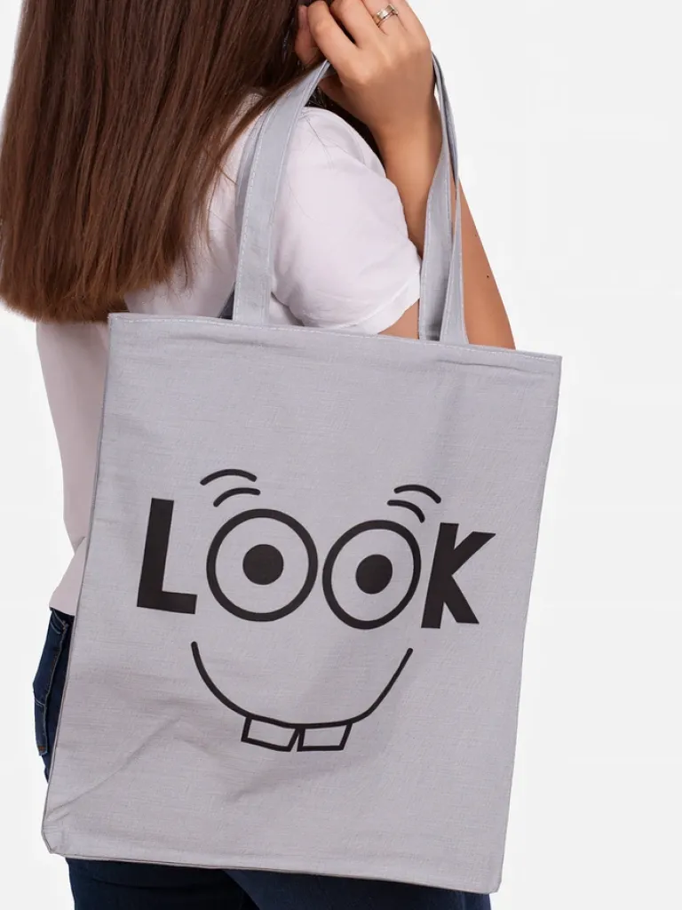 - Klasyczna torebka na ramię wykonana z miękkiej tkaniny z ozdobnym białym nadrukiem na przodzie. Zapinana na zamek błyskawiczny. W środku duża przegroda i mała zasuwana kieszonka. Idealna na zakupy!