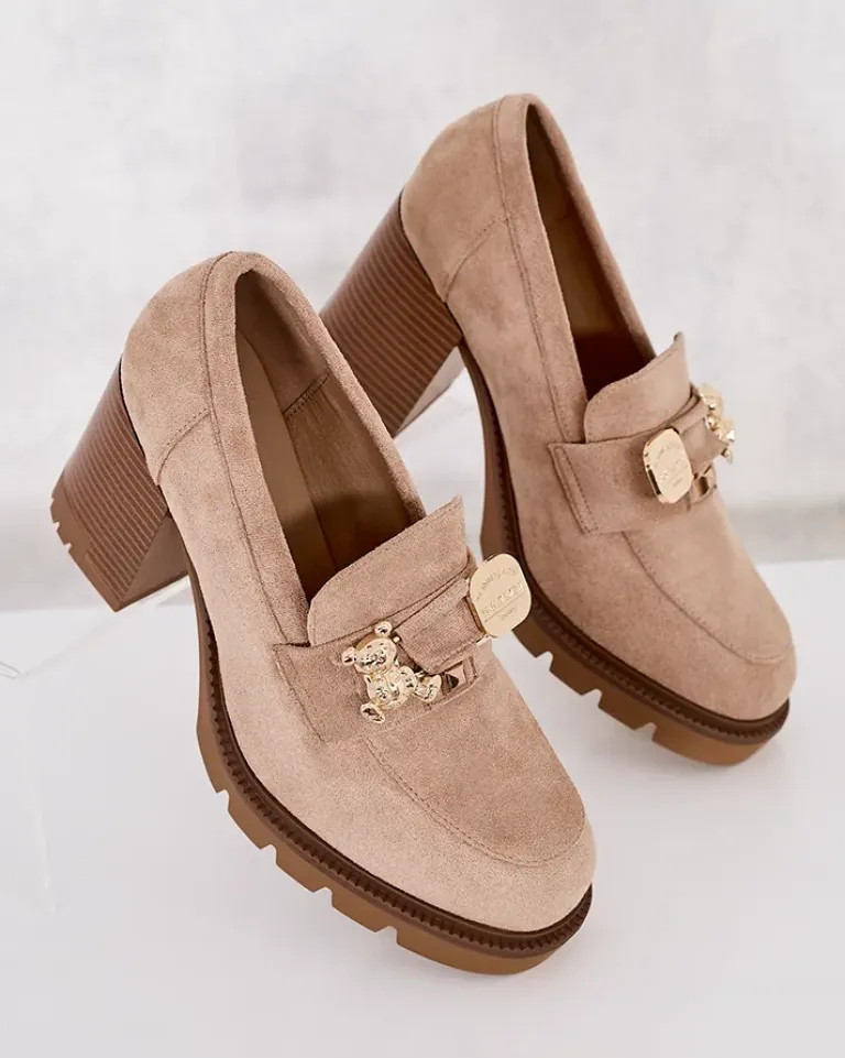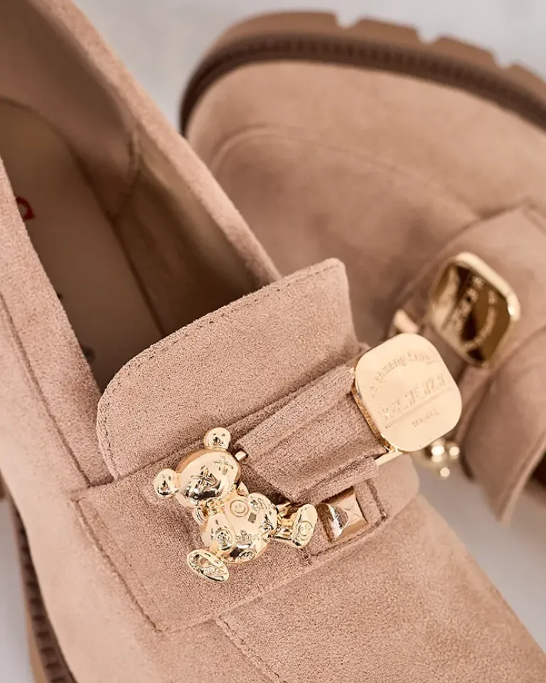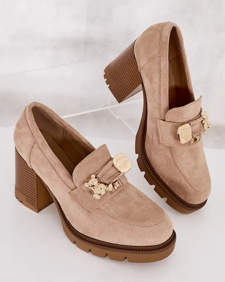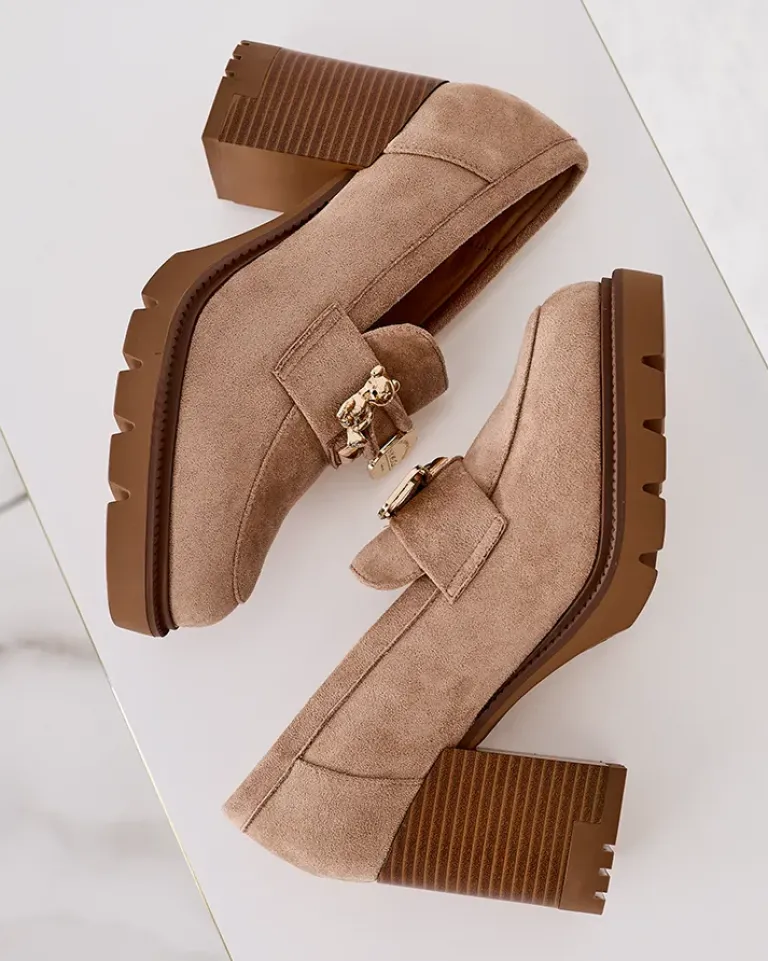 - Przepiękne damskie mokasyny na wysokim słupku. Model w stylu casual jest wykonany z zamszowej skóry ekologicznej i eko skórzanej wkładki. Nosek zaokrąglony zdobiony subtelną ozdobą. Idealna baza dla wielu codziennych looków!