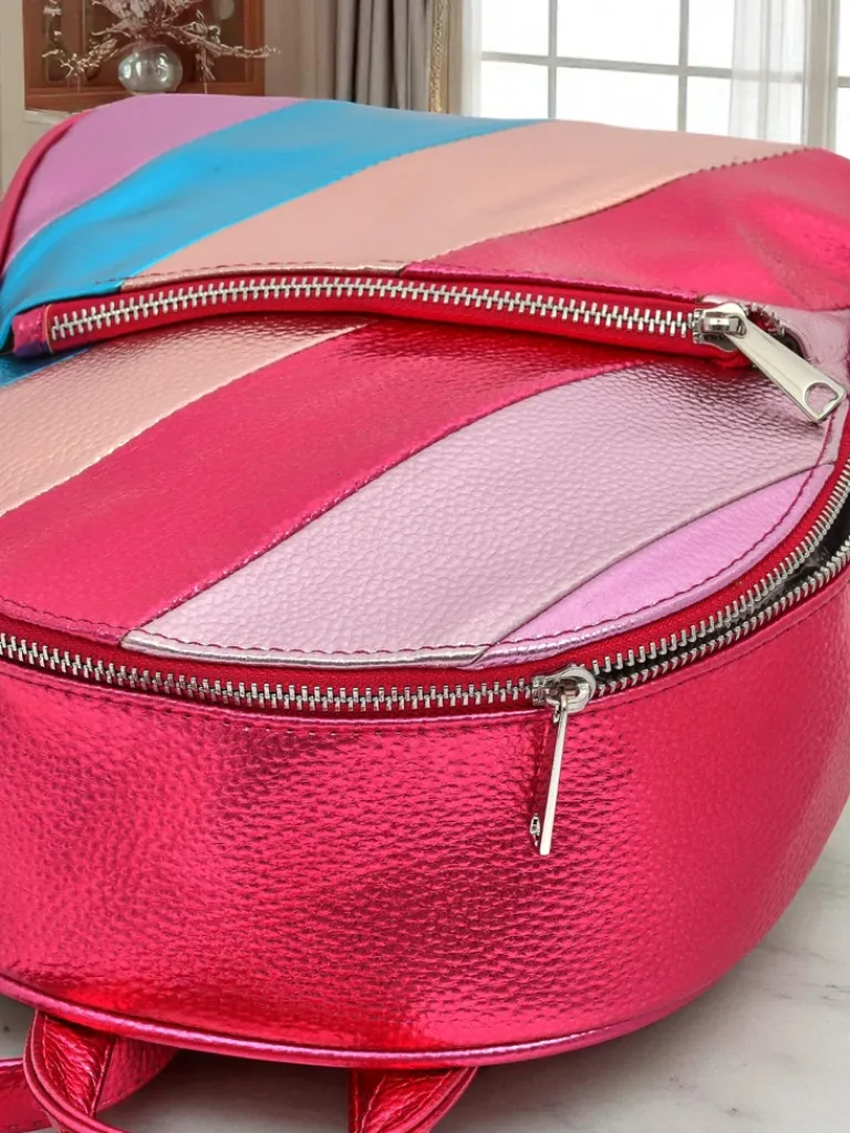 - Stylowy plecak z metalicznym wykończeniem i modnym wzorem w paski. 1 pojemna komora, 2 zewnętrzne kieszonki oraz regulowane paski na ramiona zapewniają komfort i funkcjonalność. Idealny na co dzień i miejskie wyjścia.